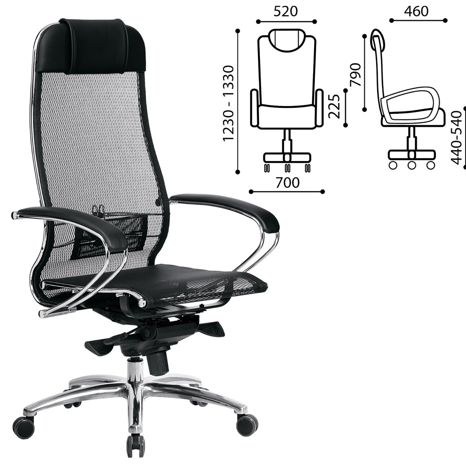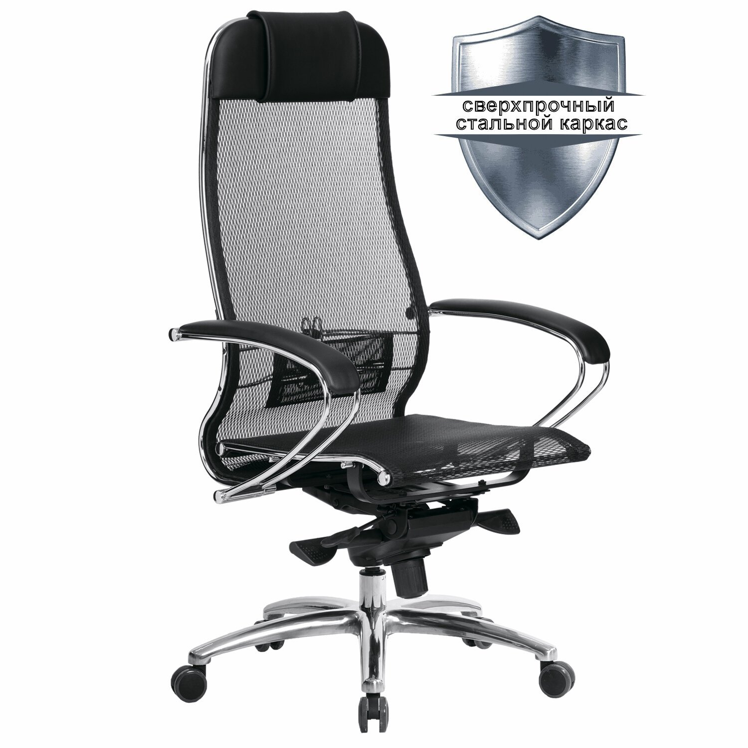 Кресло офисное МЕТТА "SAMURAI" S-1.04, сверхпрочная ткань-сетка, черное