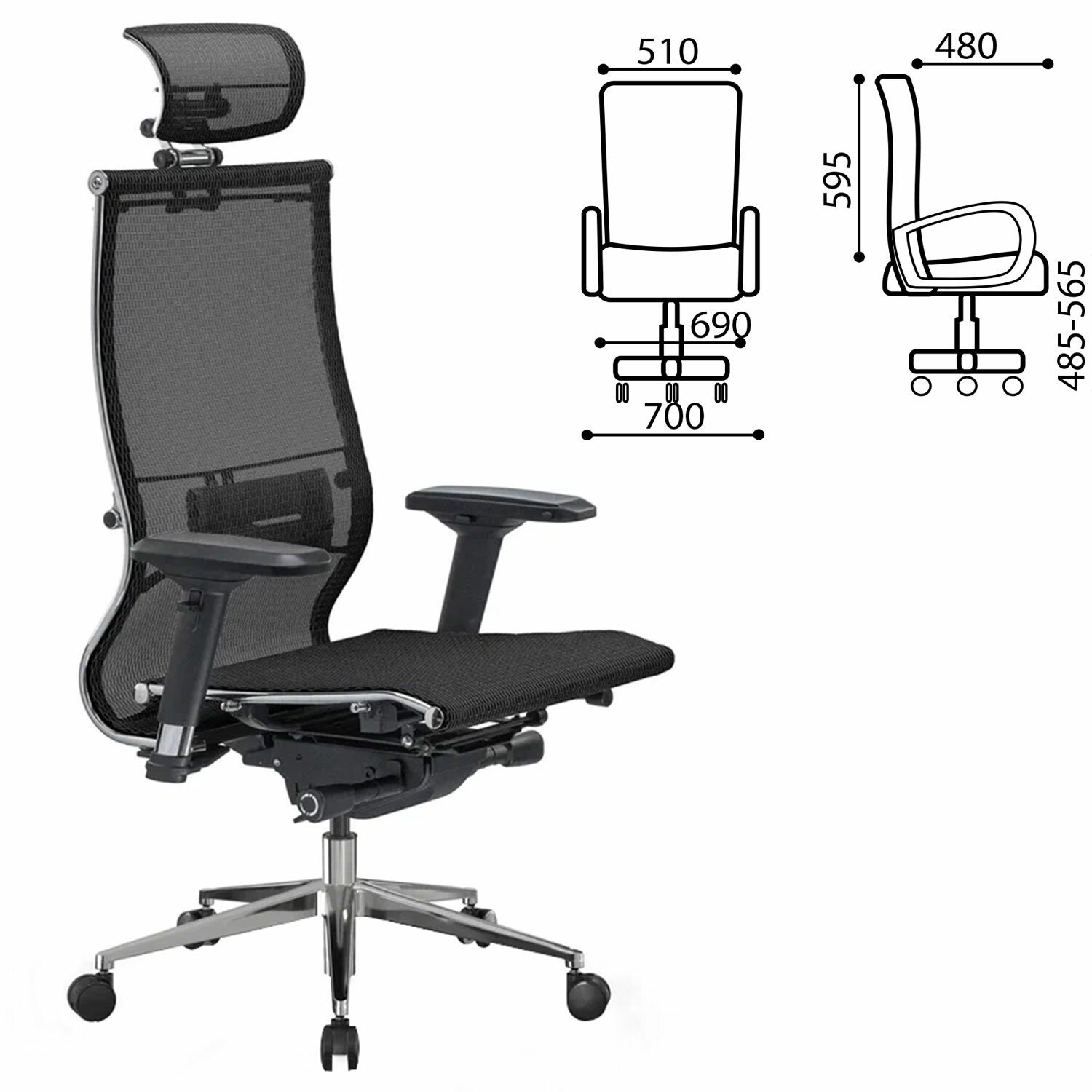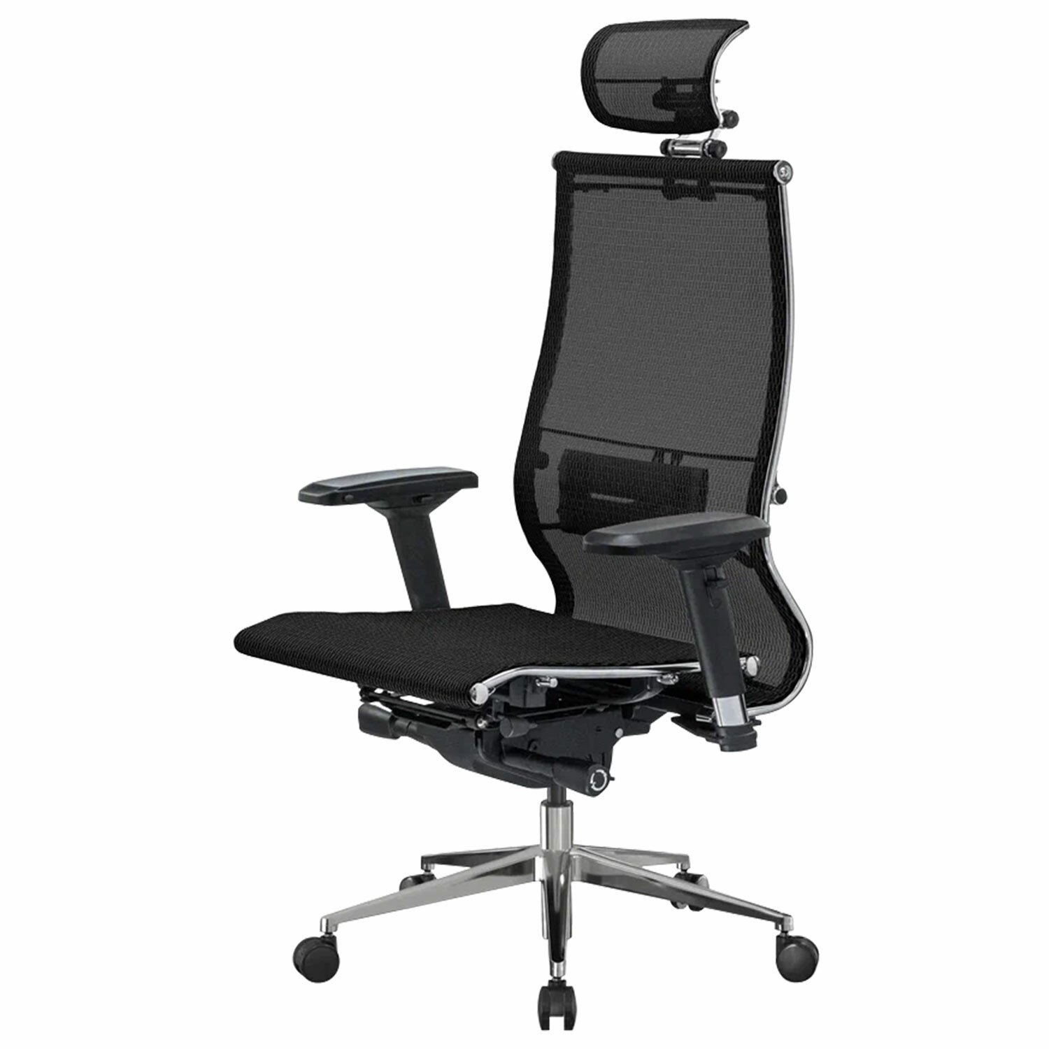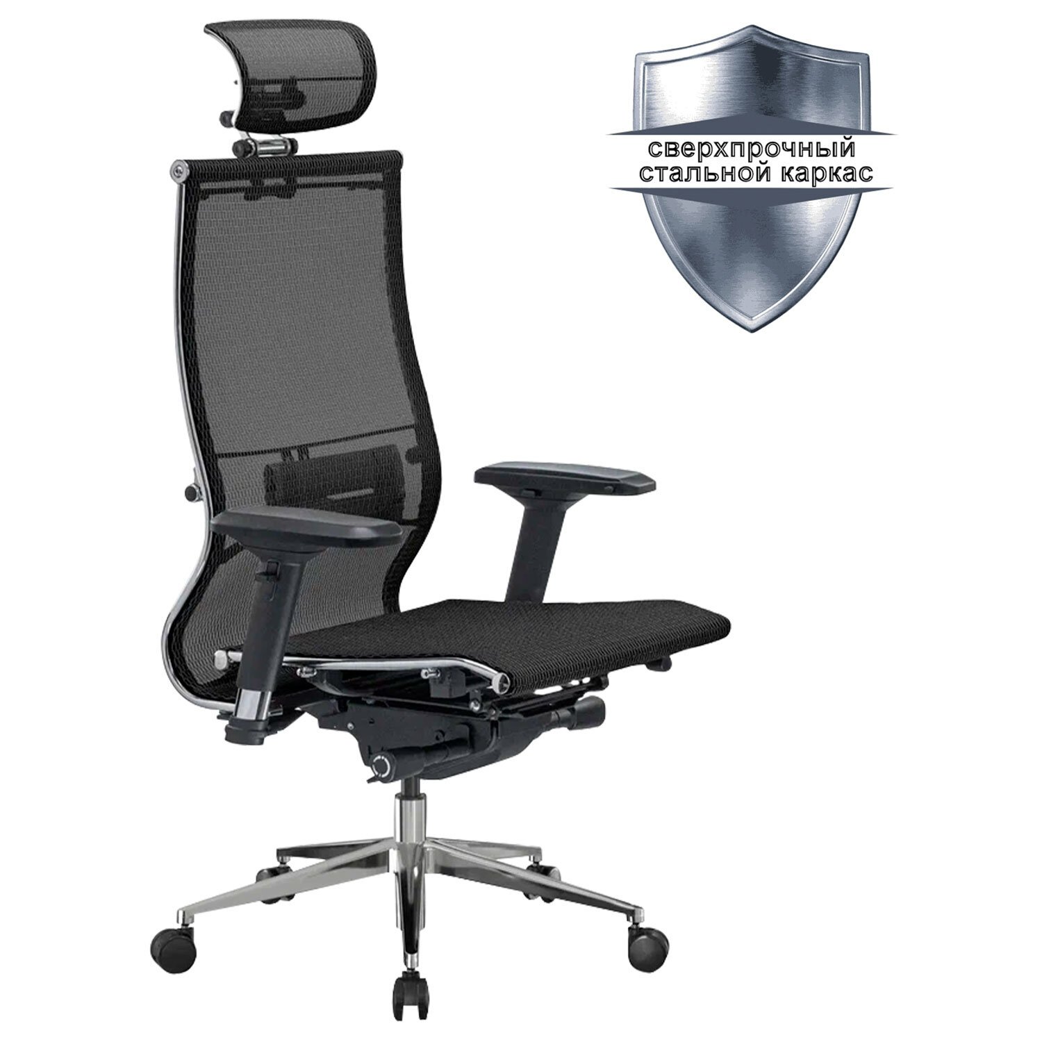 Кресло офисное МЕТТА "SAMURAI" S-3.05, с подголовником, сверхпрочная ткань-сетка, черное