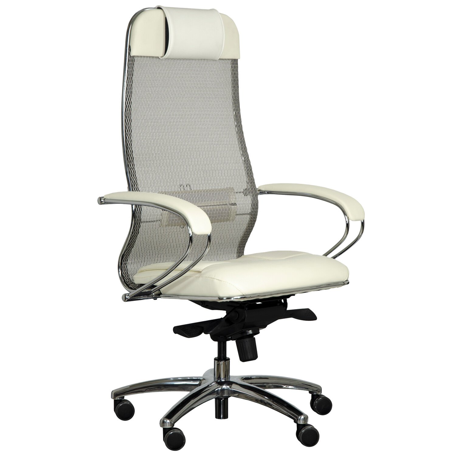 Кресло офисное МЕТТА "SAMURAI" SL-1.04, сверхпрочная ткань-сетка/экокожа, бежевое
