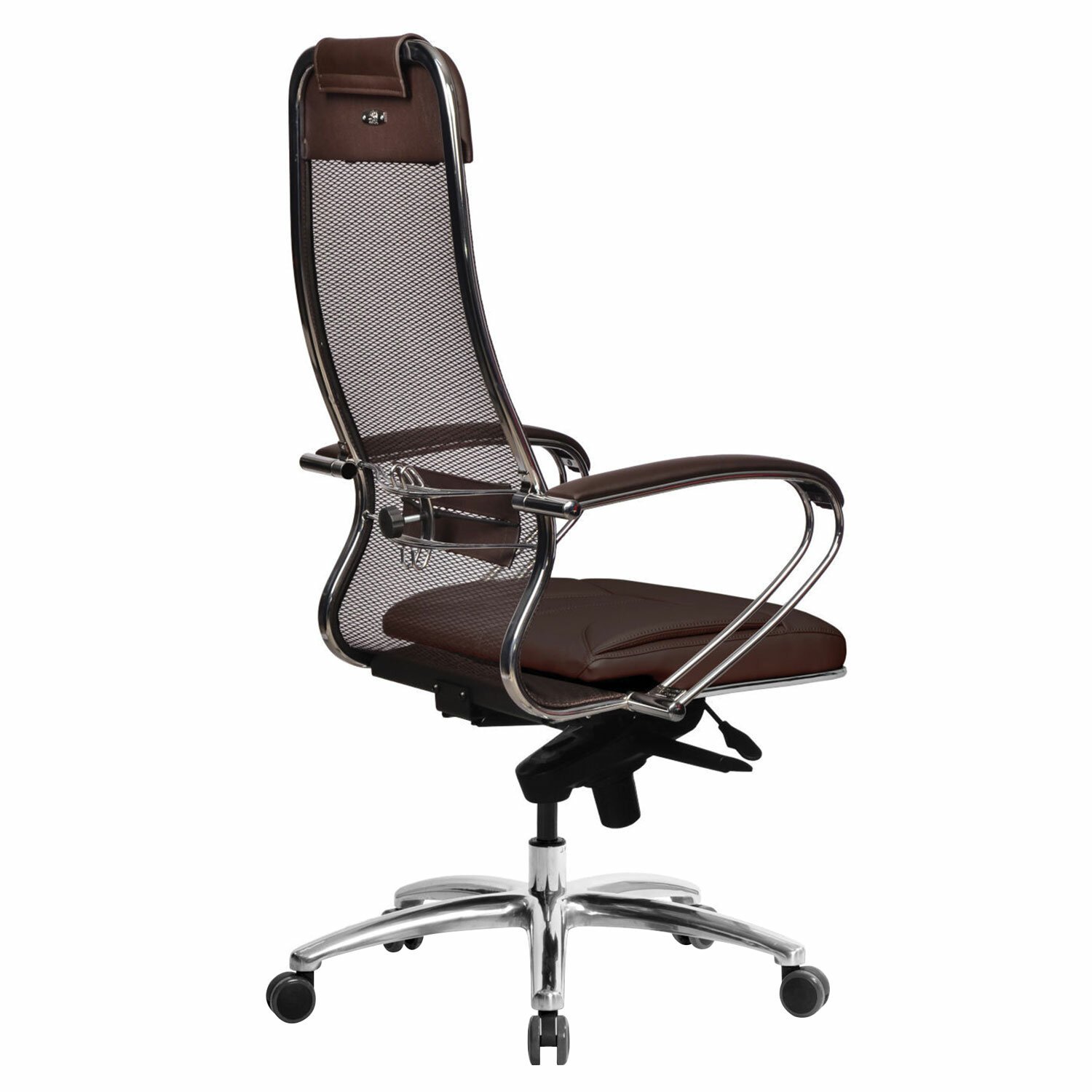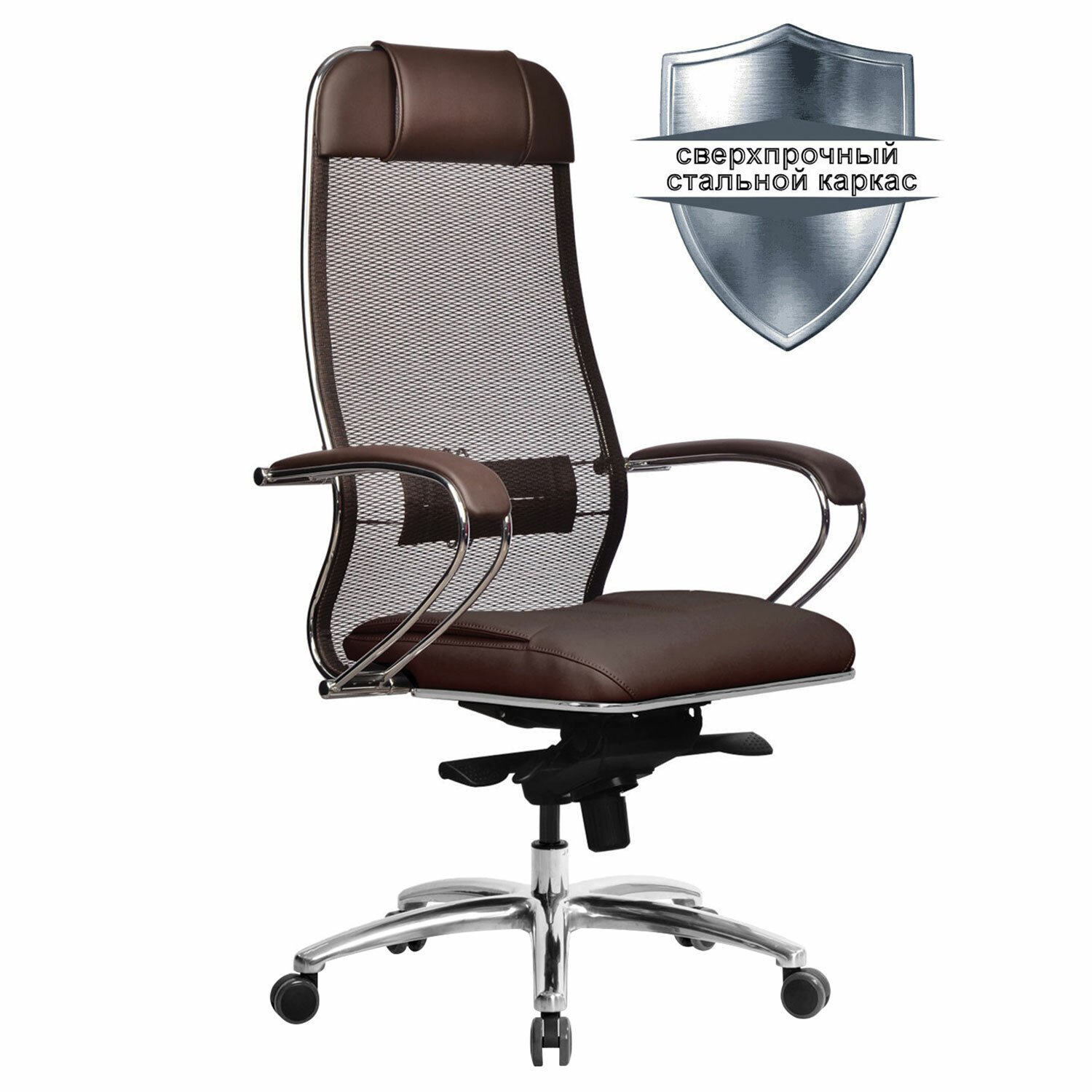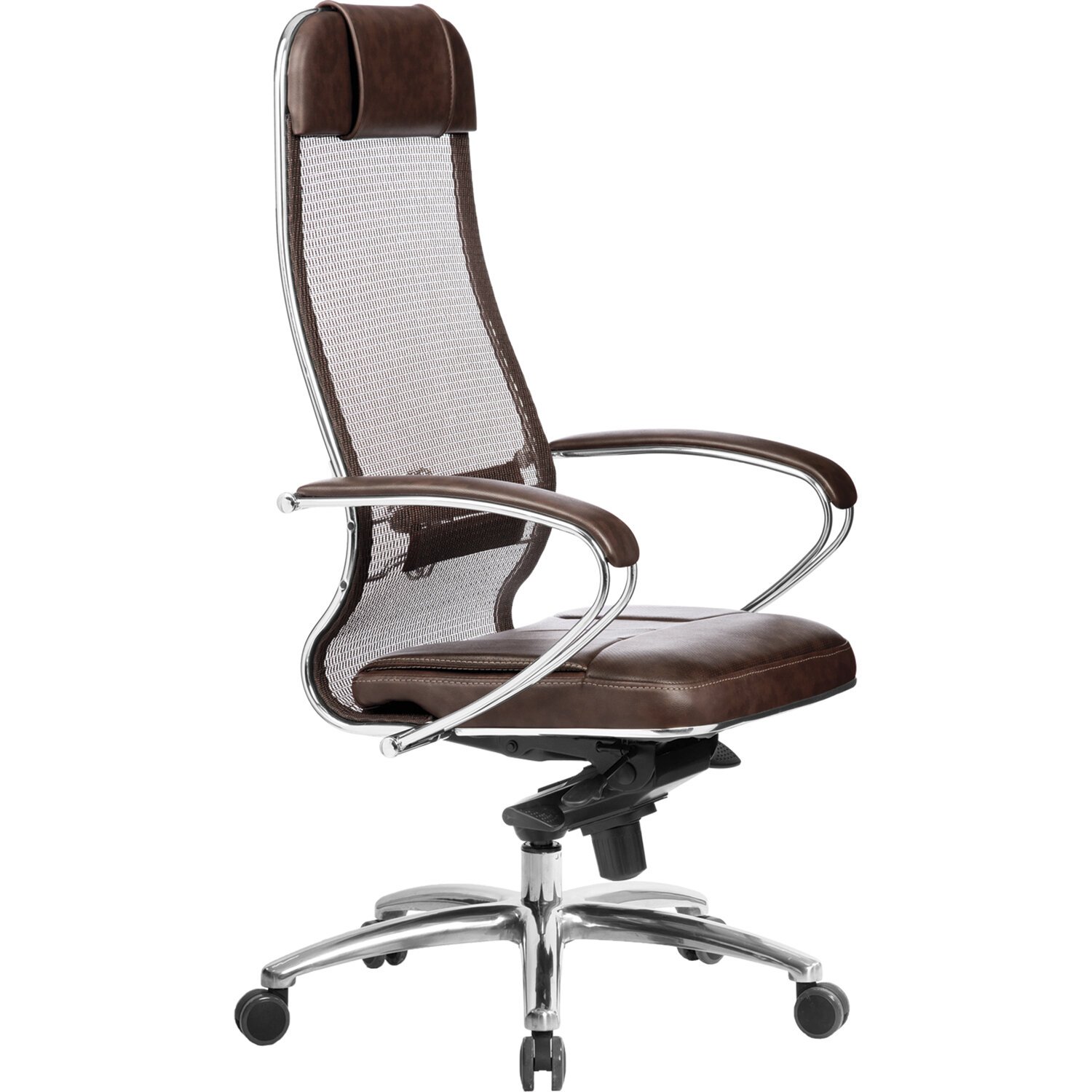 Кресло офисное МЕТТА "SAMURAI" SL-1.04, сверхпрочная ткань-сетка/экокожа, темно-коричневое