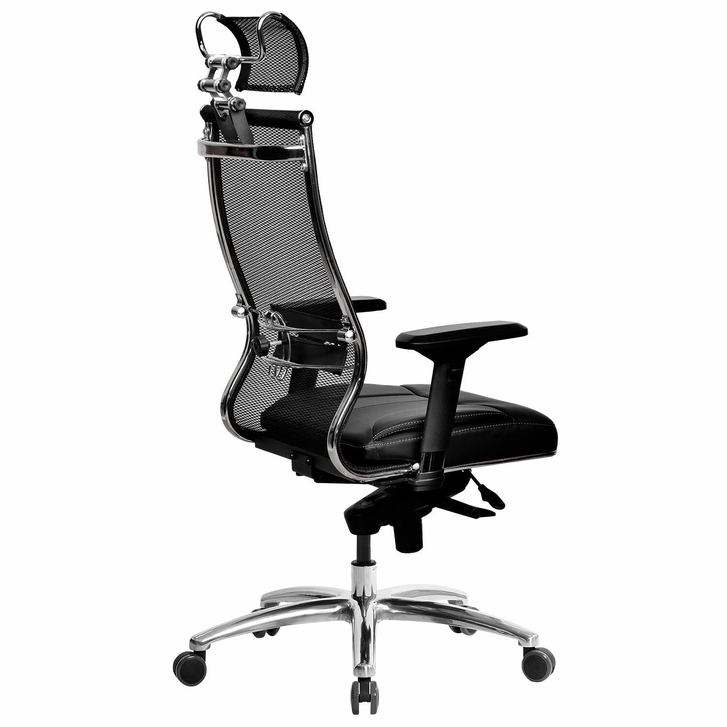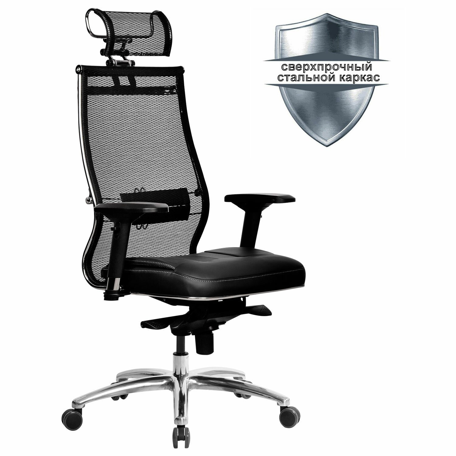 Кресло офисное МЕТТА "SAMURAI" SL-3.05, с подголовником, сверхпрочная ткань-сетка/экокожа, черное