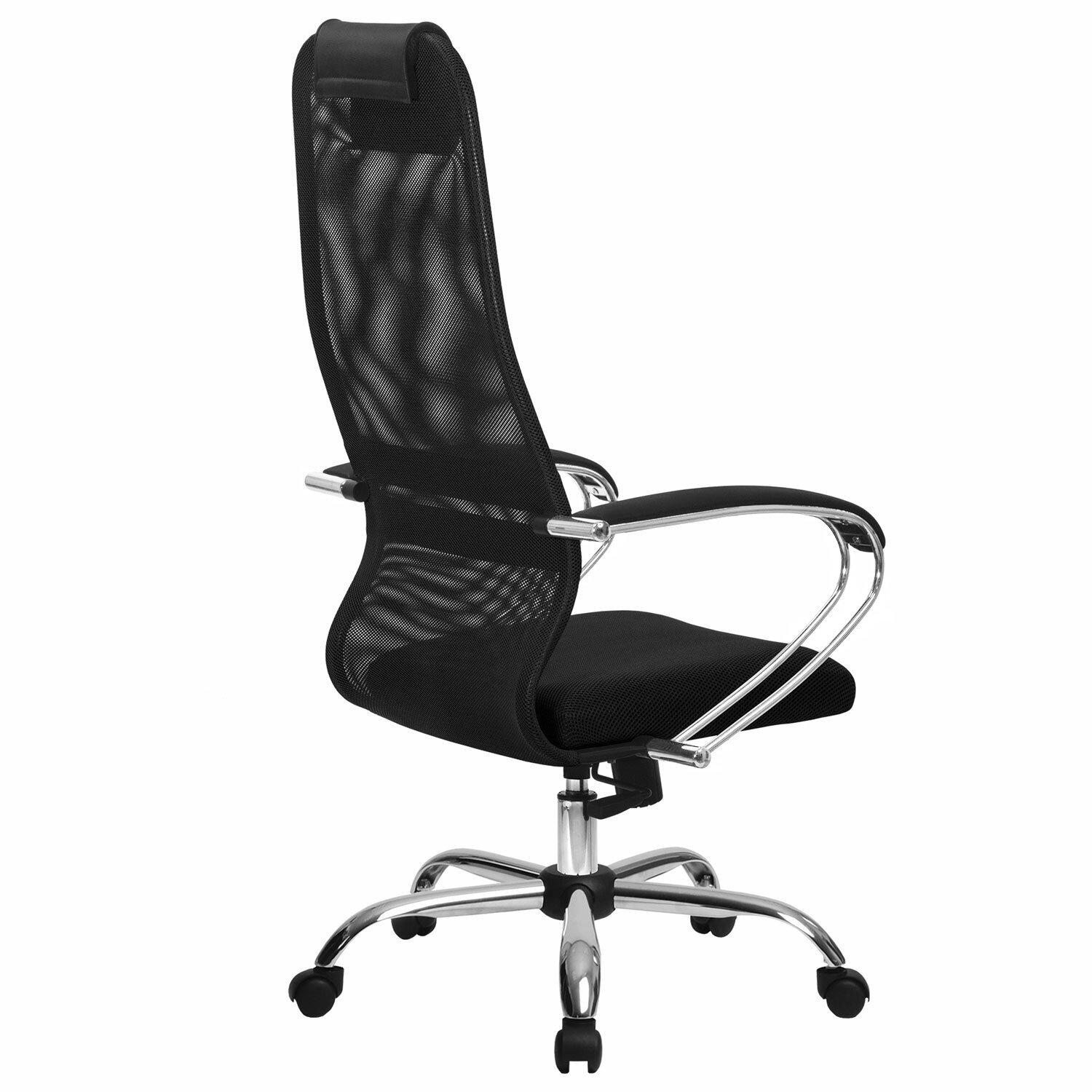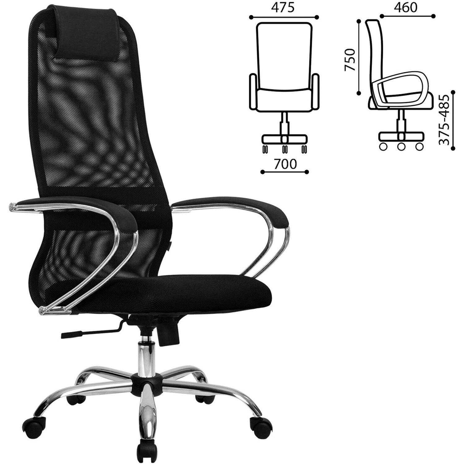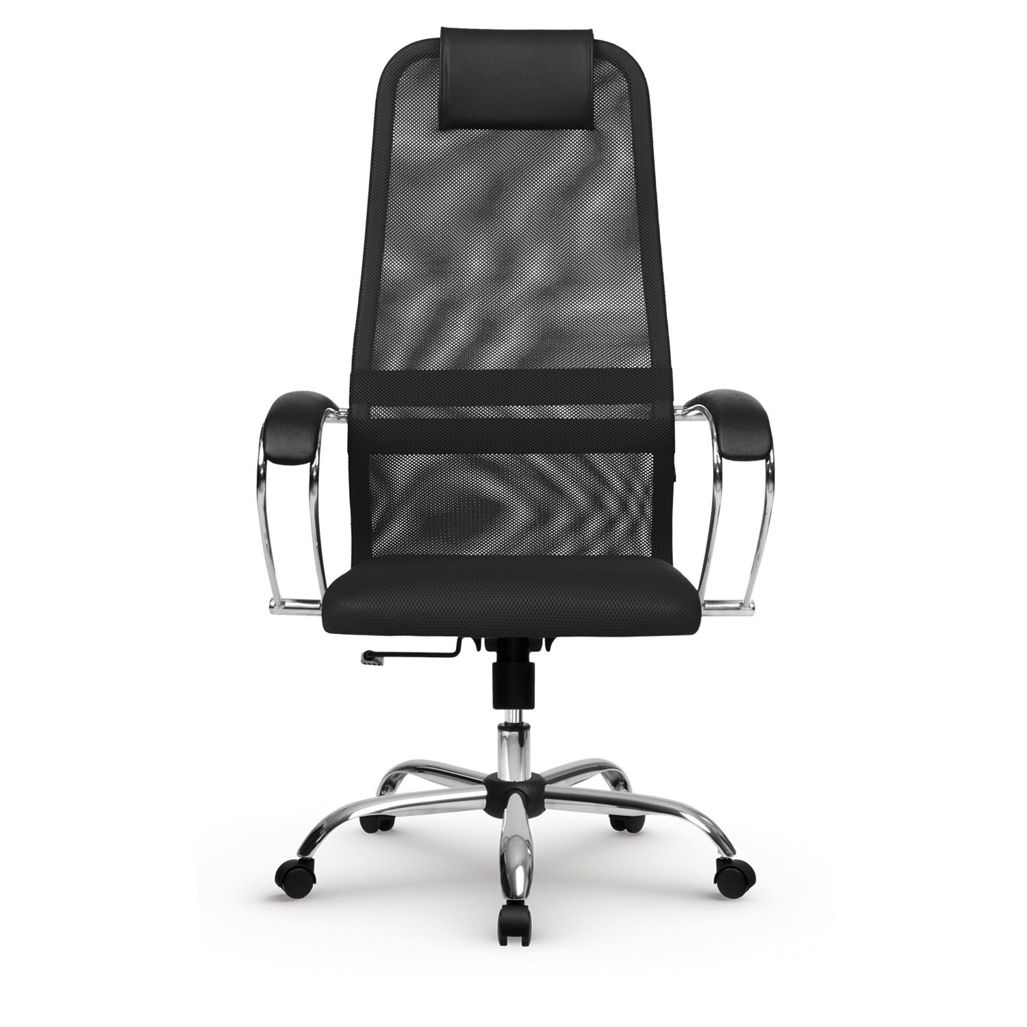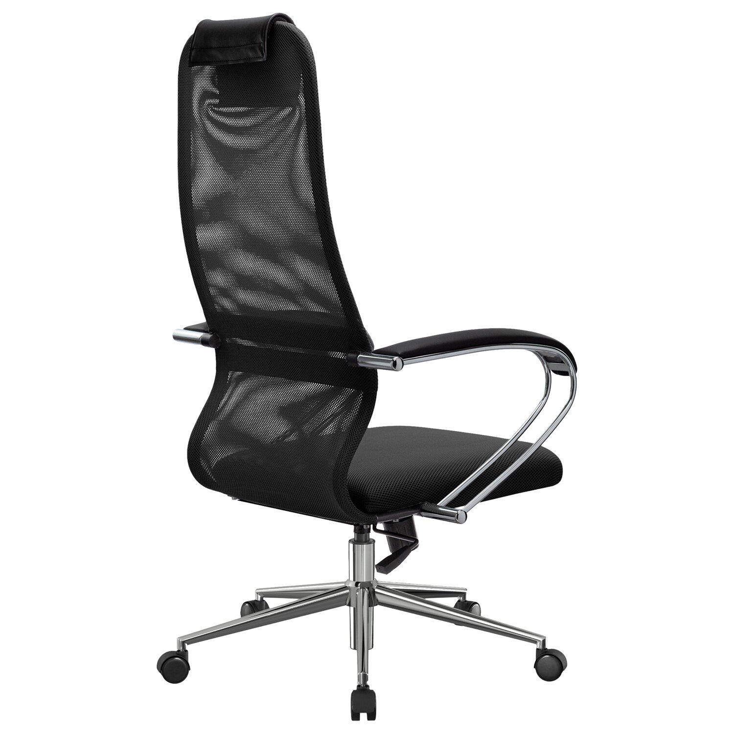 Кресло офисное МЕТТА "SU-B-8" хром, ткань-сетка, сиденье мягкое, черное