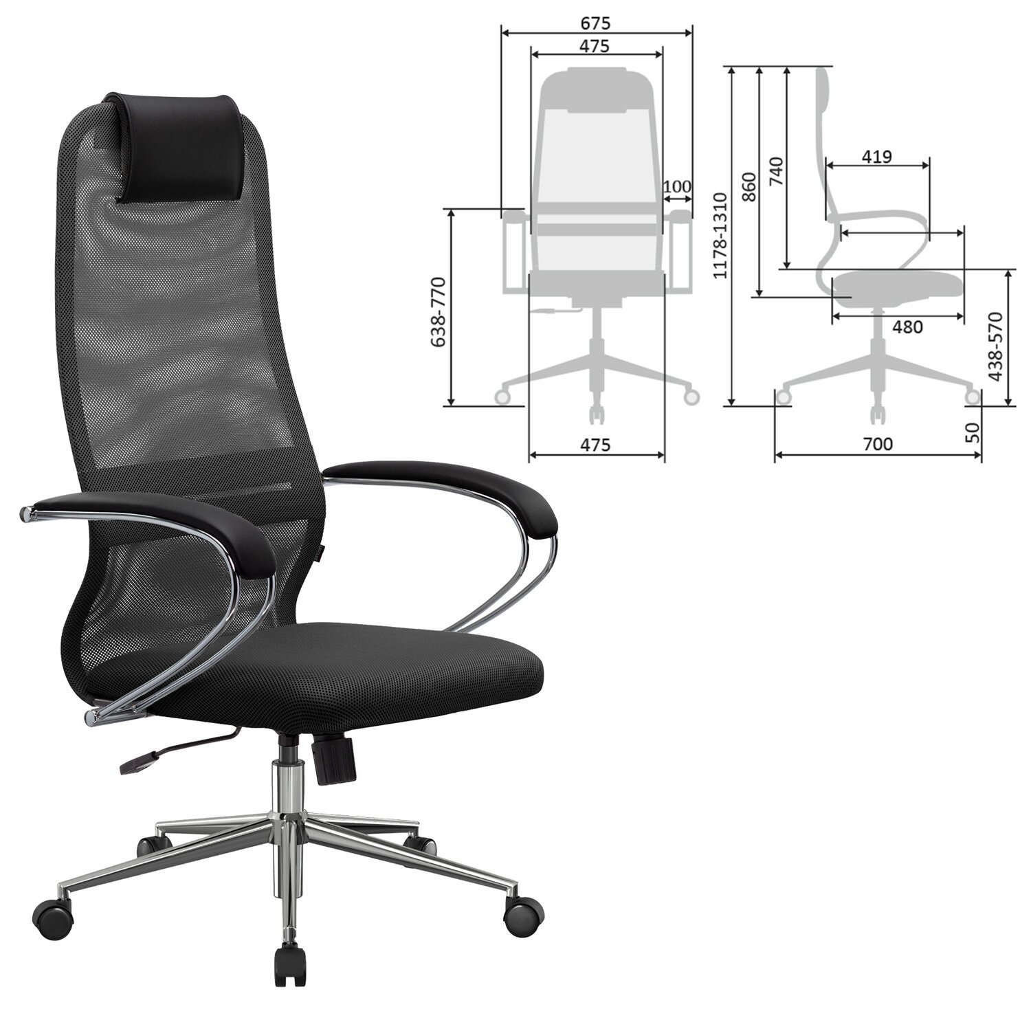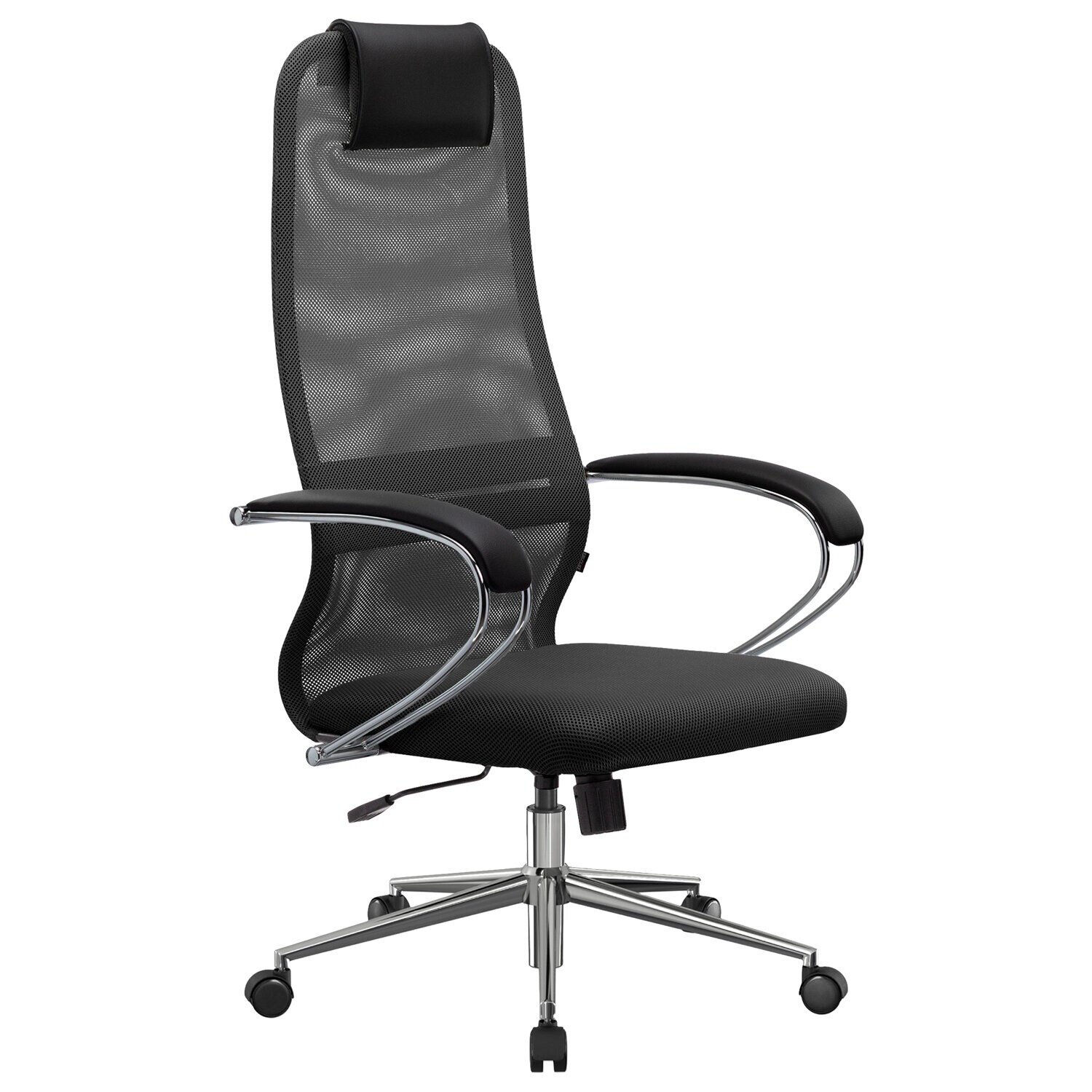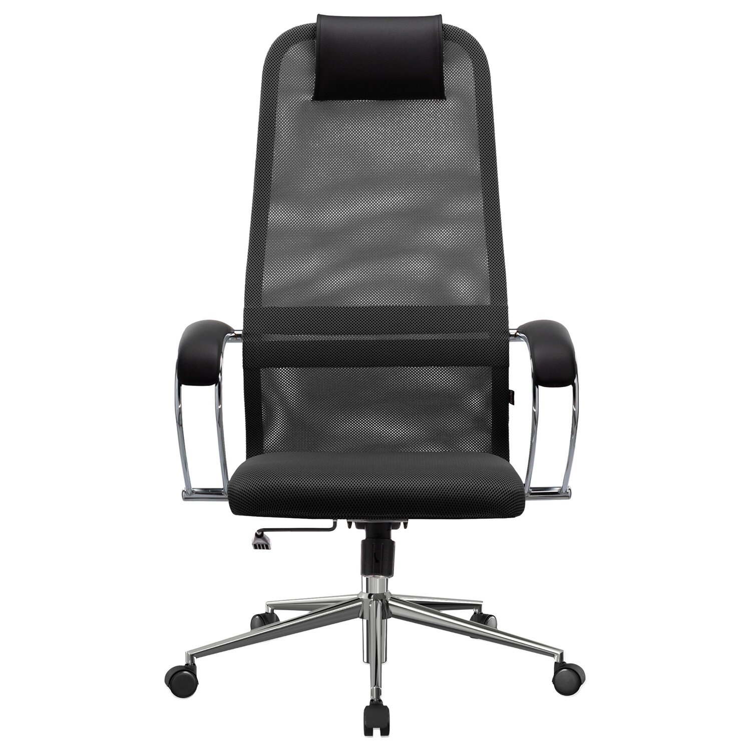 Кресло офисное МЕТТА "SU-B-10" хром, ткань-сетка, сиденье и спинка мягкие, темно-серое