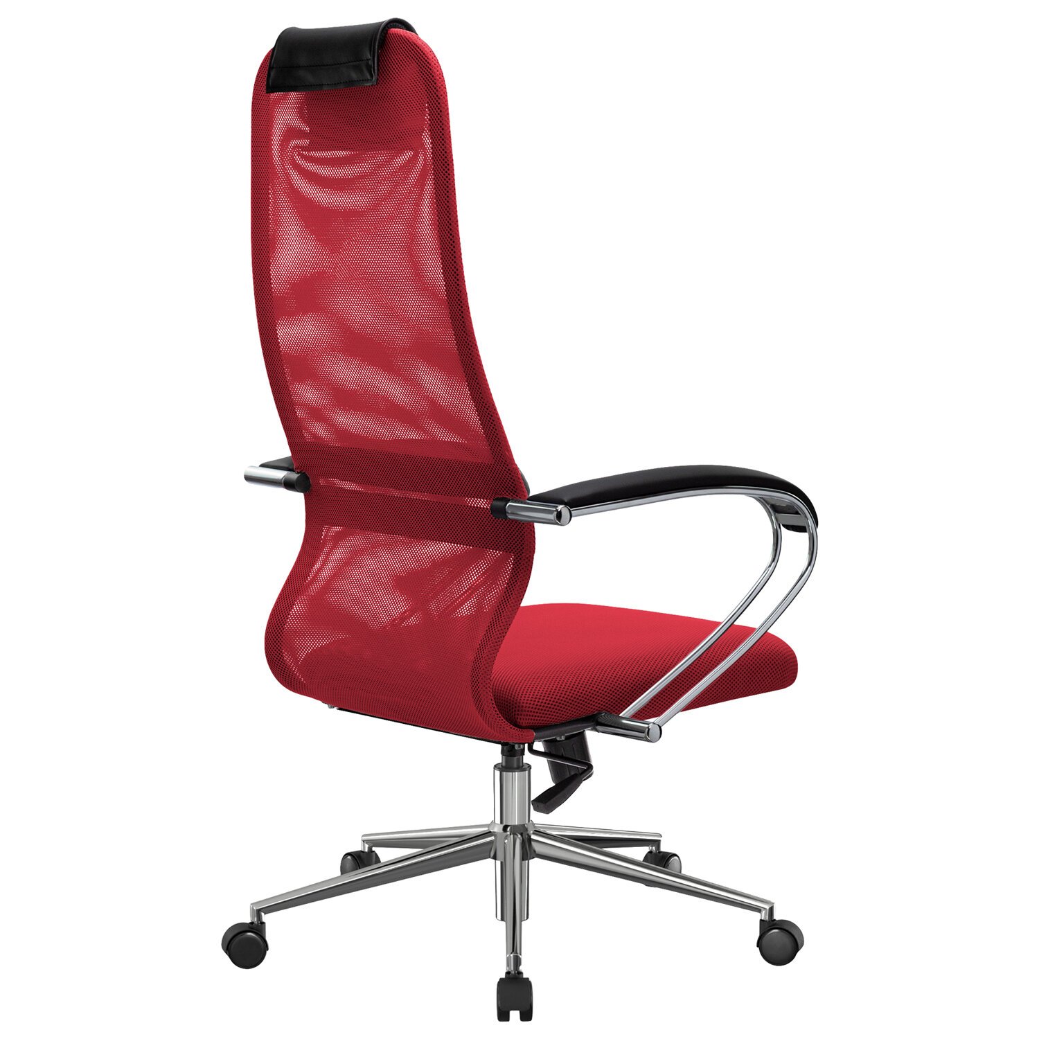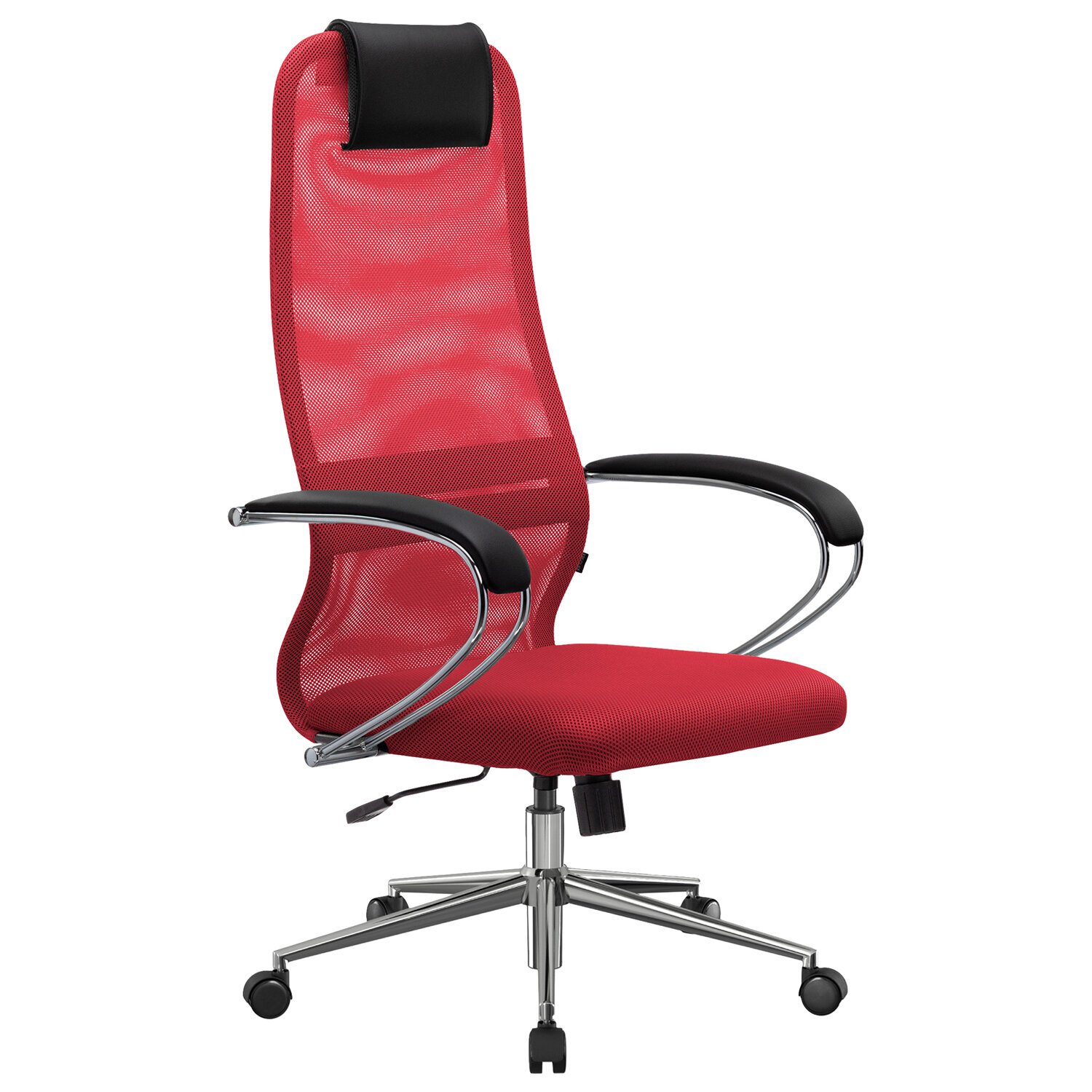 Кресло офисное МЕТТА "SU-B-8" хром, ткань-сетка, сиденье мягкое, красное