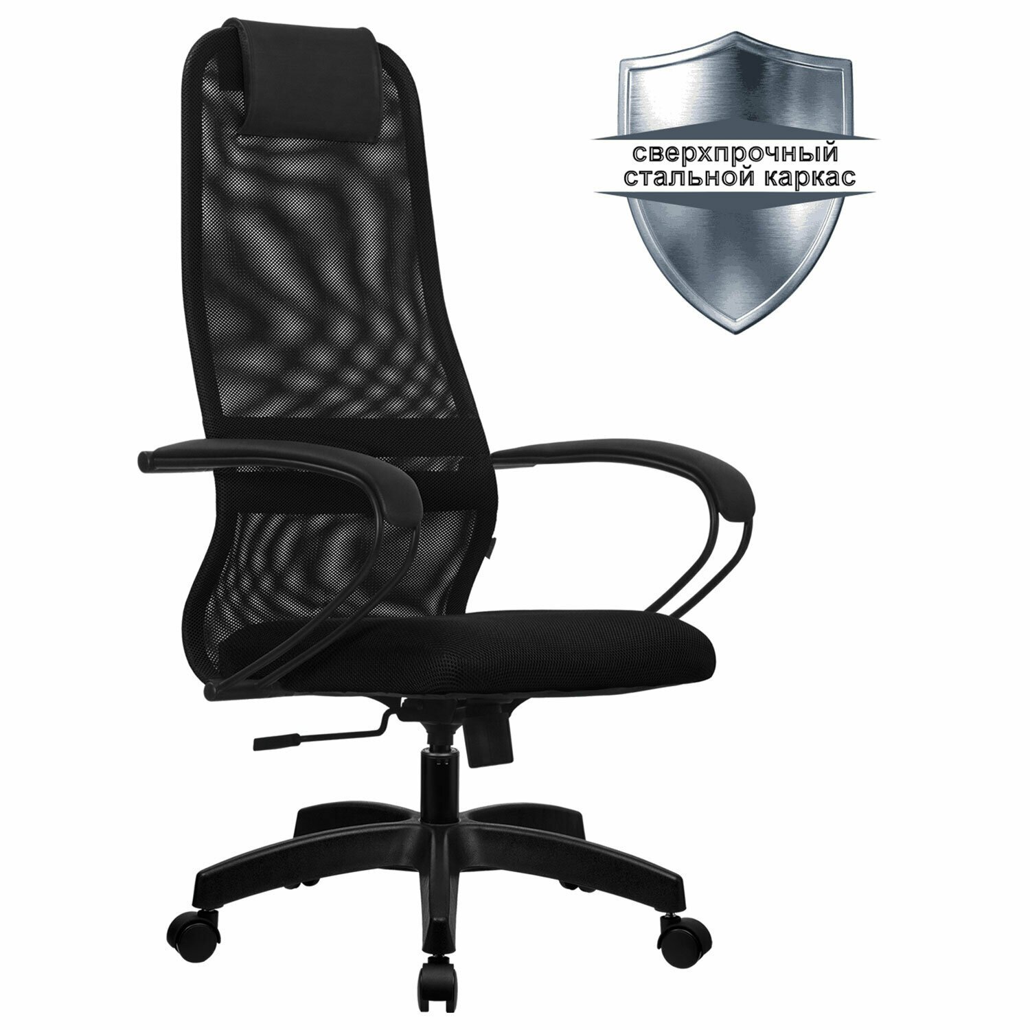 Кресло офисное МЕТТА "SU-B-8" хром, ткань-сетка, сиденье мягкое, черное