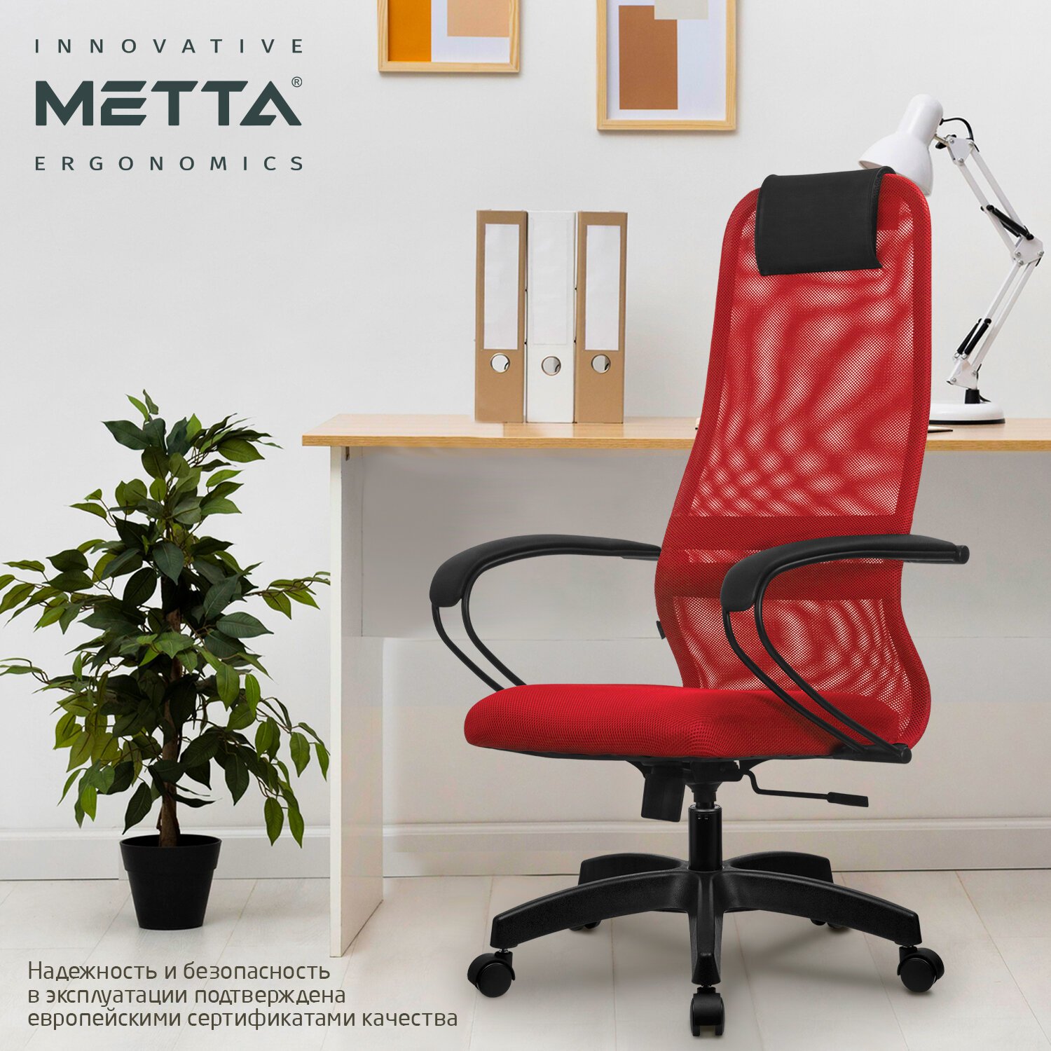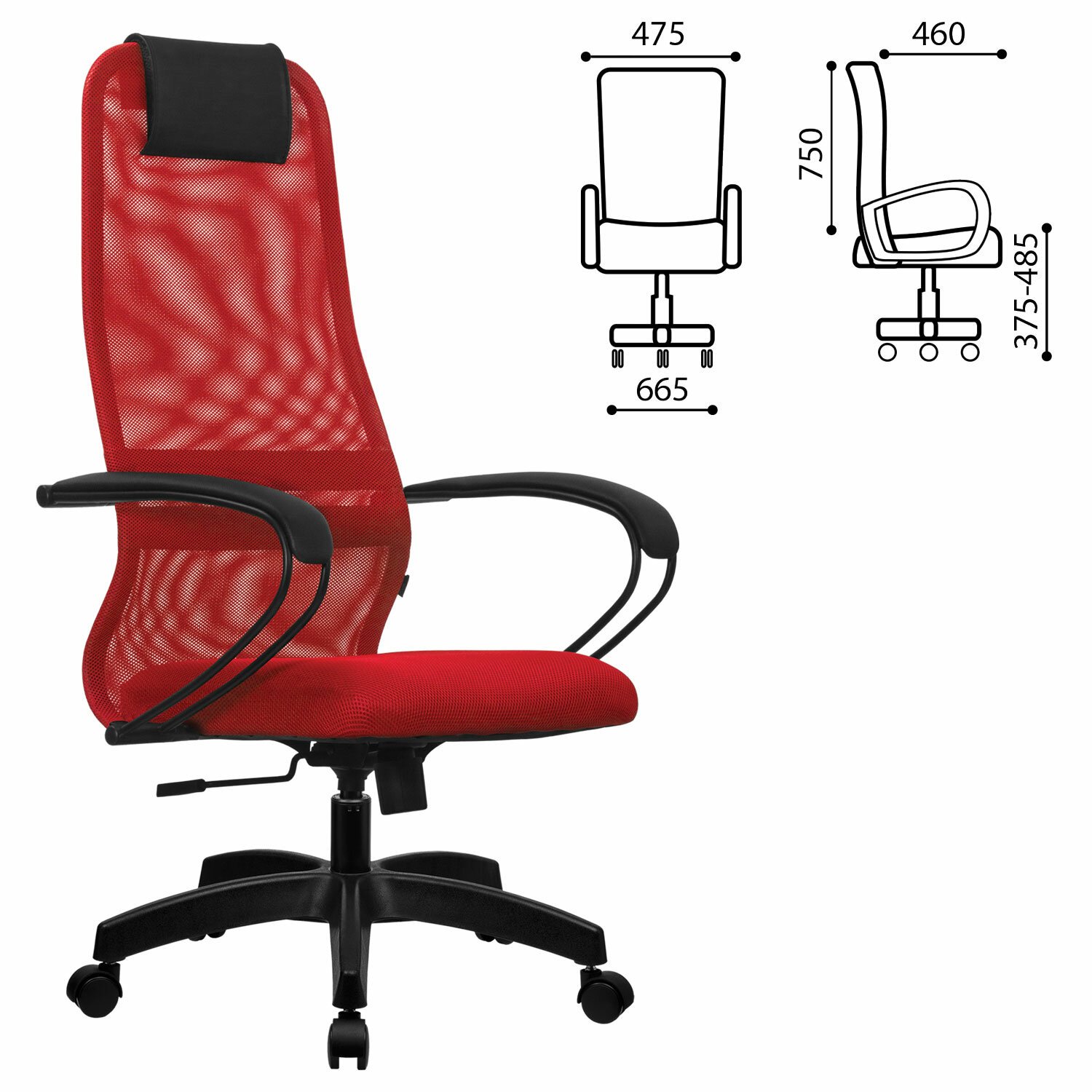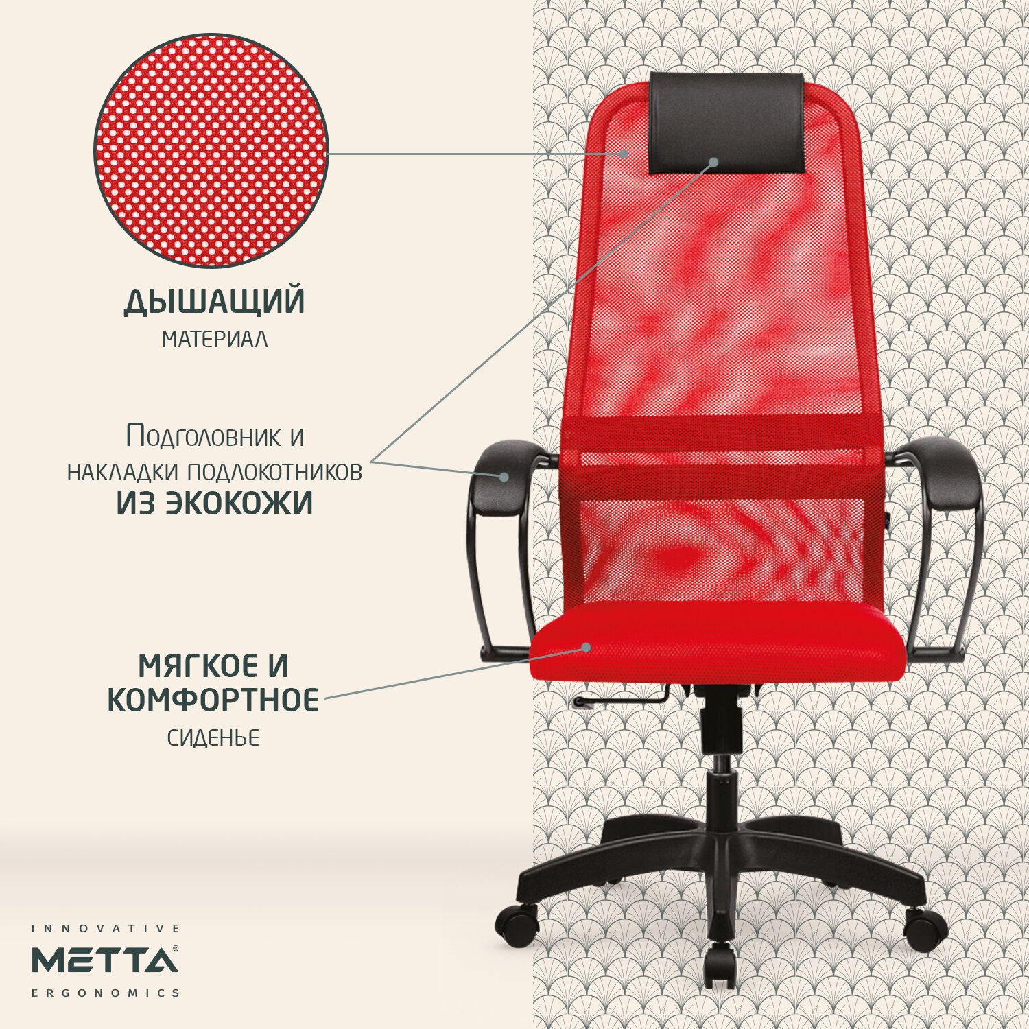 Кресло офисное МЕТТА "SU-B-8" пластик, ткань-сетка, сиденье мягкое, красное