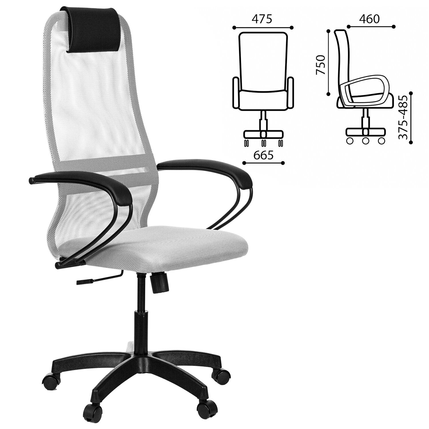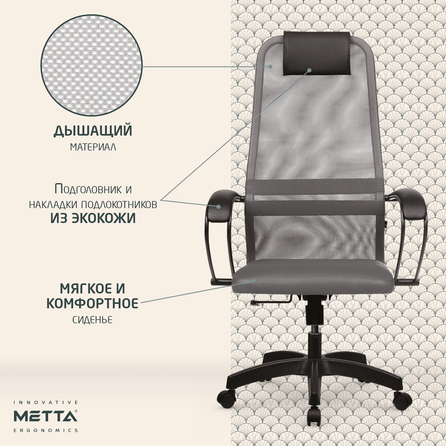 Кресло офисное МЕТТА "SU-B-8" пластик, ткань-сетка, сиденье мягкое, светло-серое