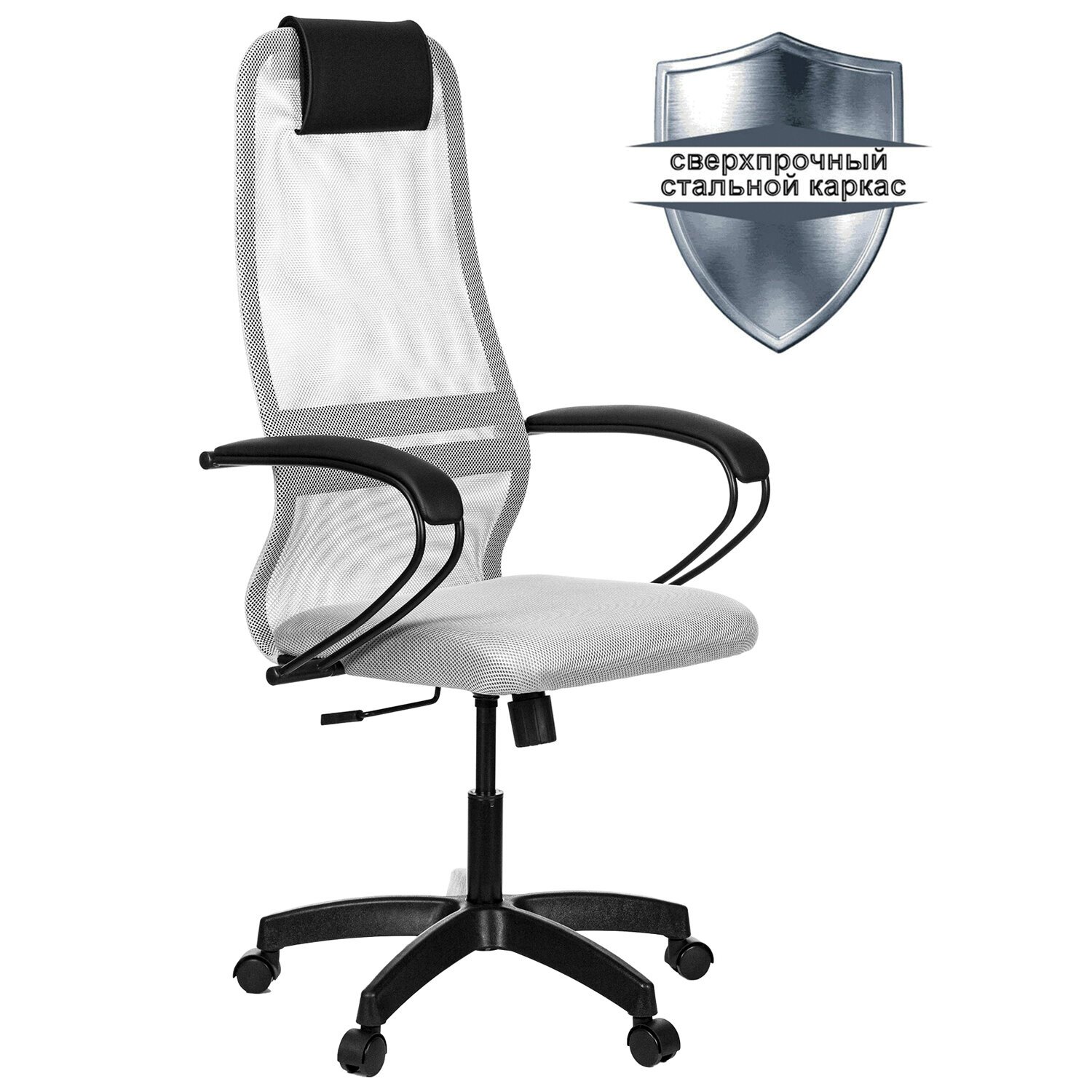 Кресло офисное МЕТТА "SU-B-8" хром, ткань-сетка, сиденье мягкое, светло-серое