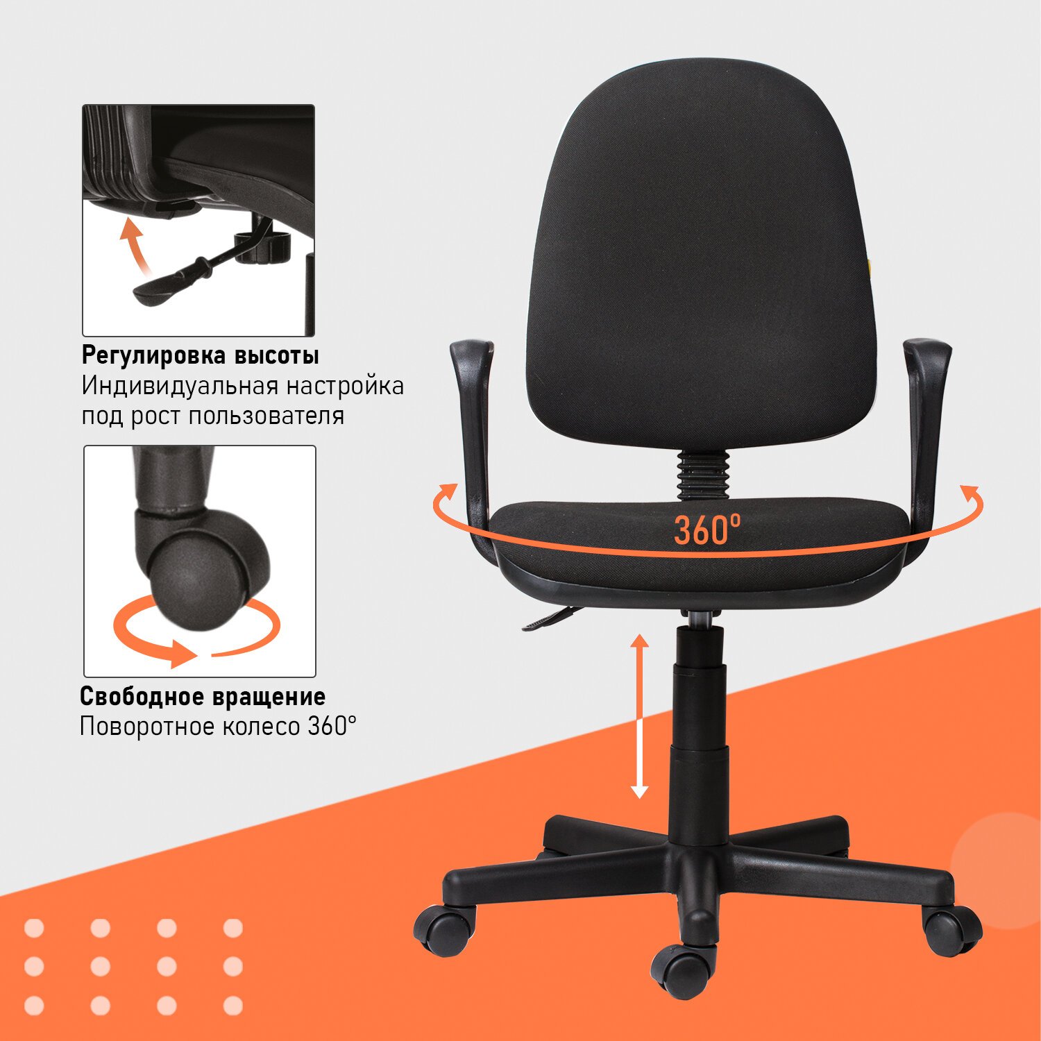 Кресло CH-1300N "Престиж+", с подлокотниками, ткань, черное, 1215475