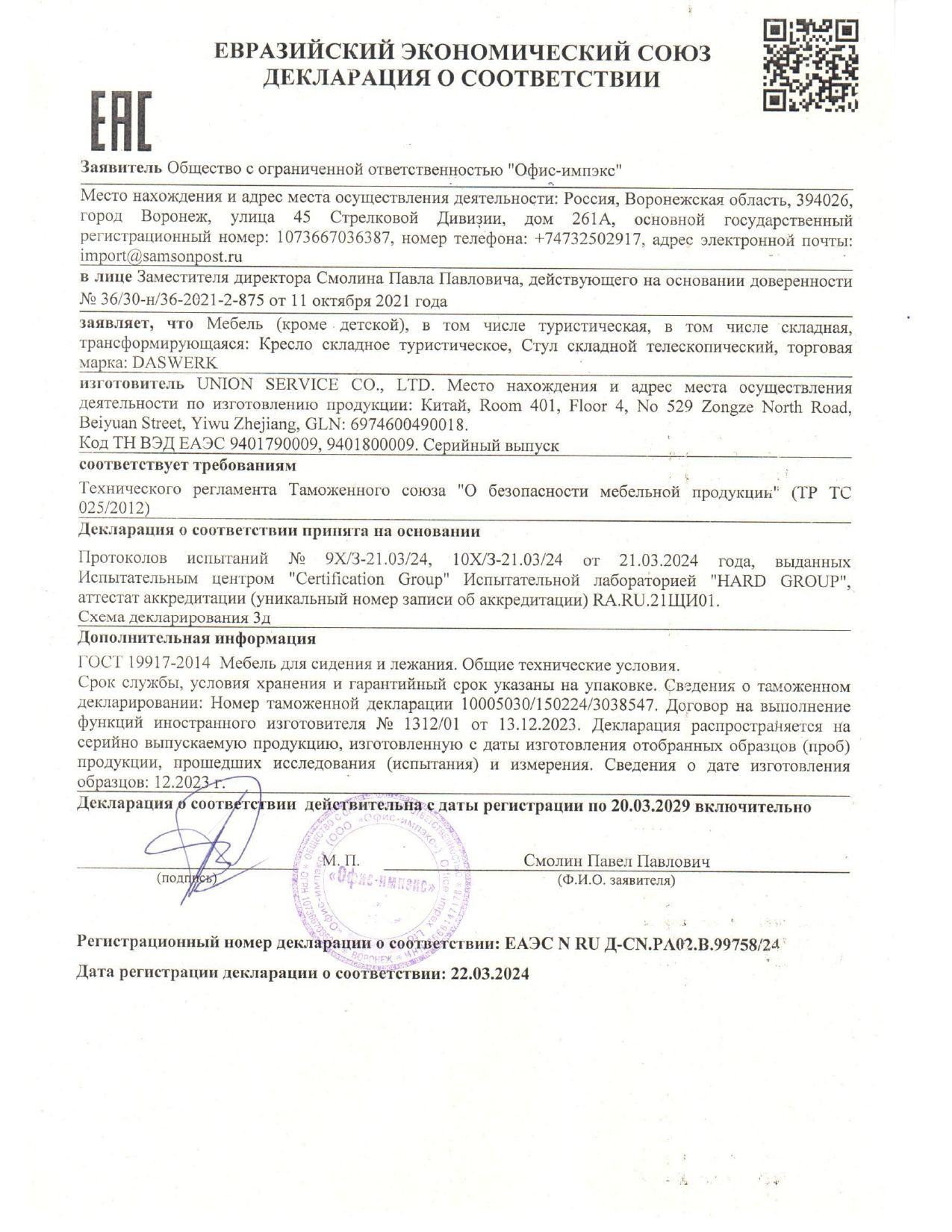 Стул складной телескопический туристический садовый для пикника, DASWERK, 680049
