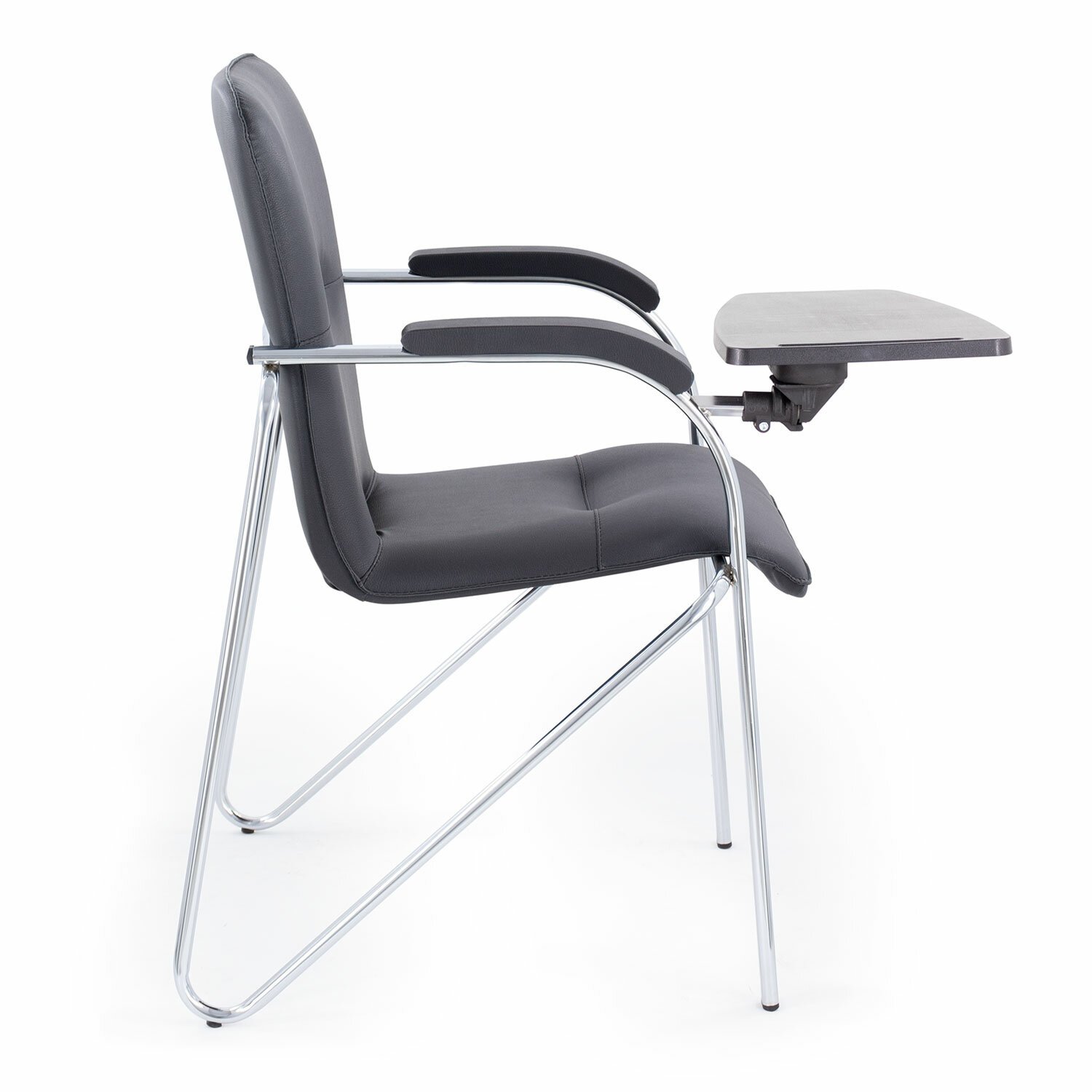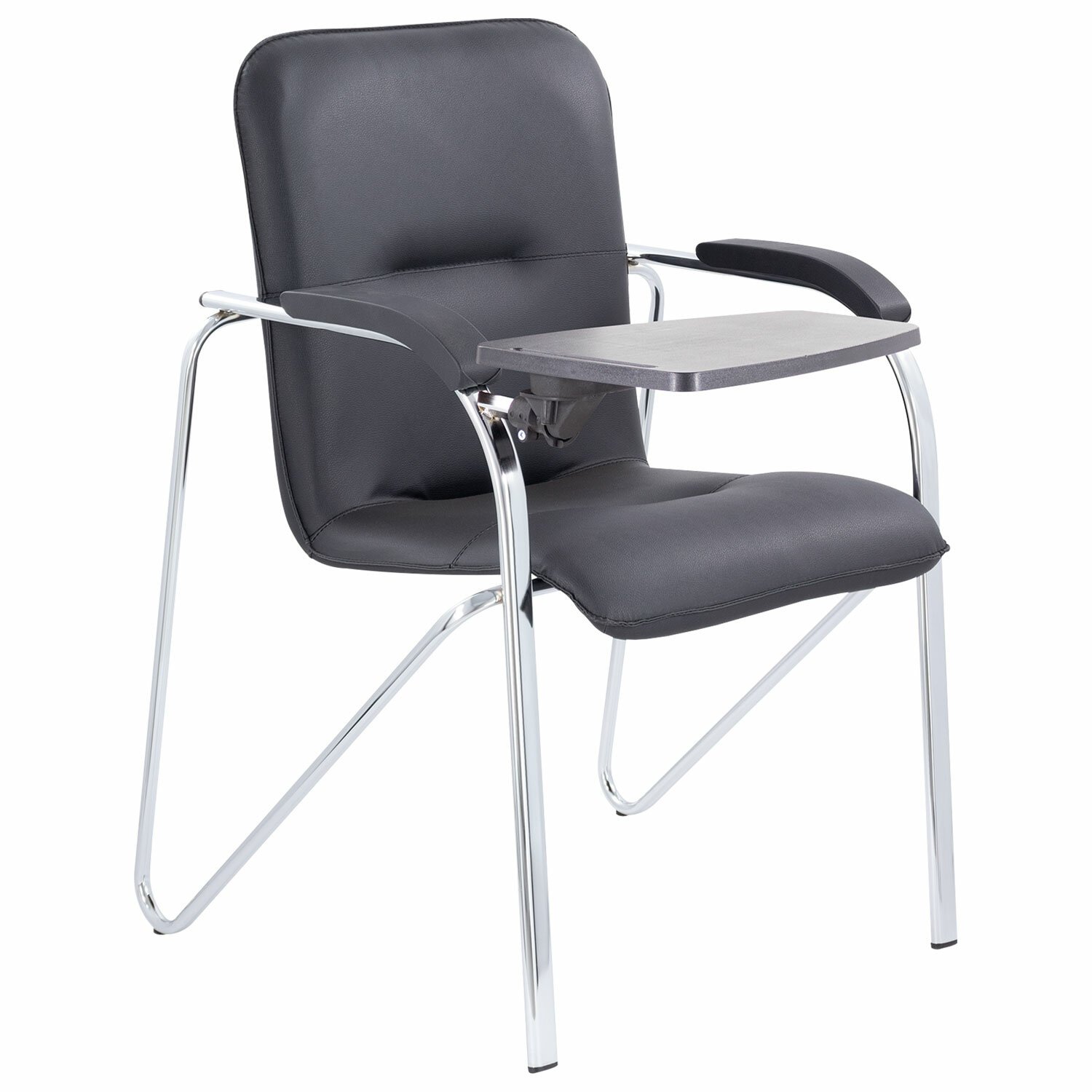 Кресло для приемных и переговорных "Samba", деревянные накладки, хромированный каркас, кожзам черный