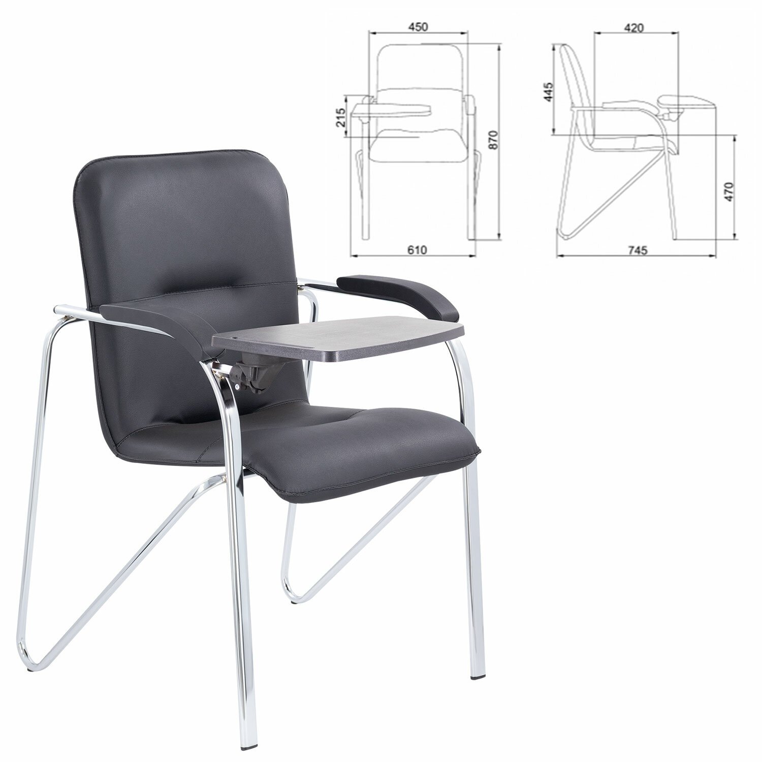 Кресло со столом BRABIX "Samba CF-108 BOX-2", хром каркас, кожзам черный, разобрано, 533218