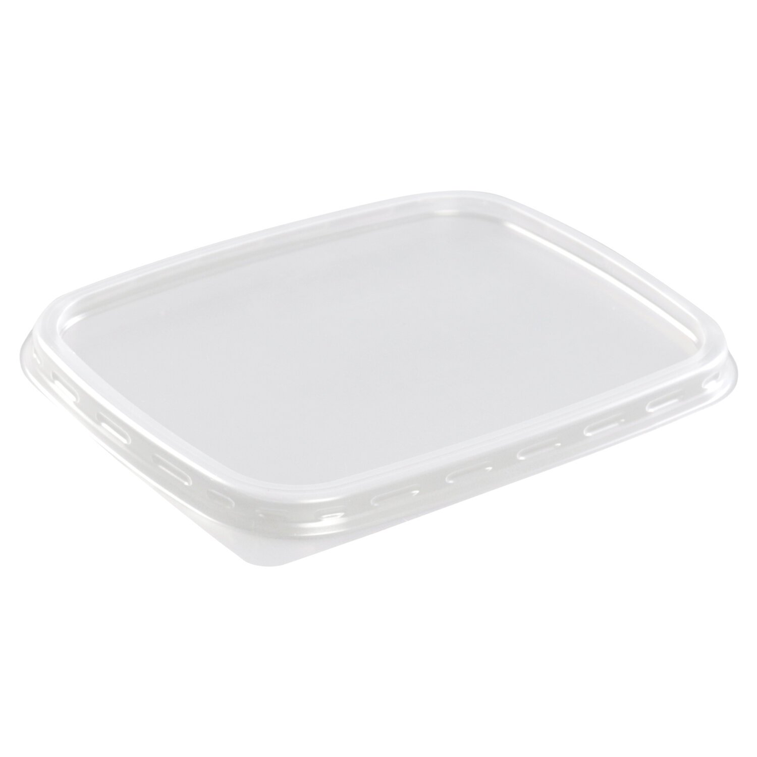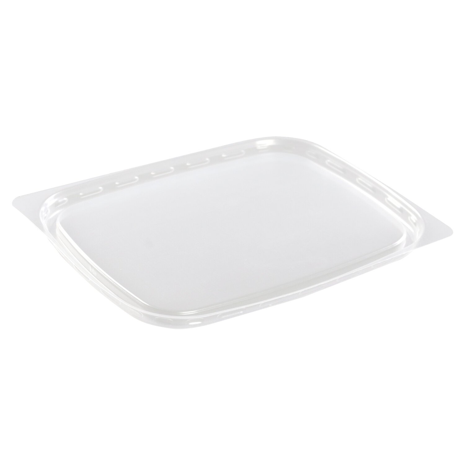 Крышка для прямоугольных контейнеров, которые используют для упаковки полуфабрикатов, мороженого и готовых изделий, удобны для транспортировки и хранения широкого ассортимента продукции.