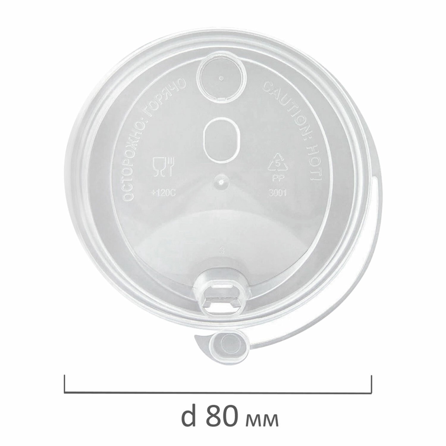 Крышка с питейником для бумажного стакана, диаметр 80 мм, глянцевая, прозрачная, полипропилен, ВЗЛП, 3002П