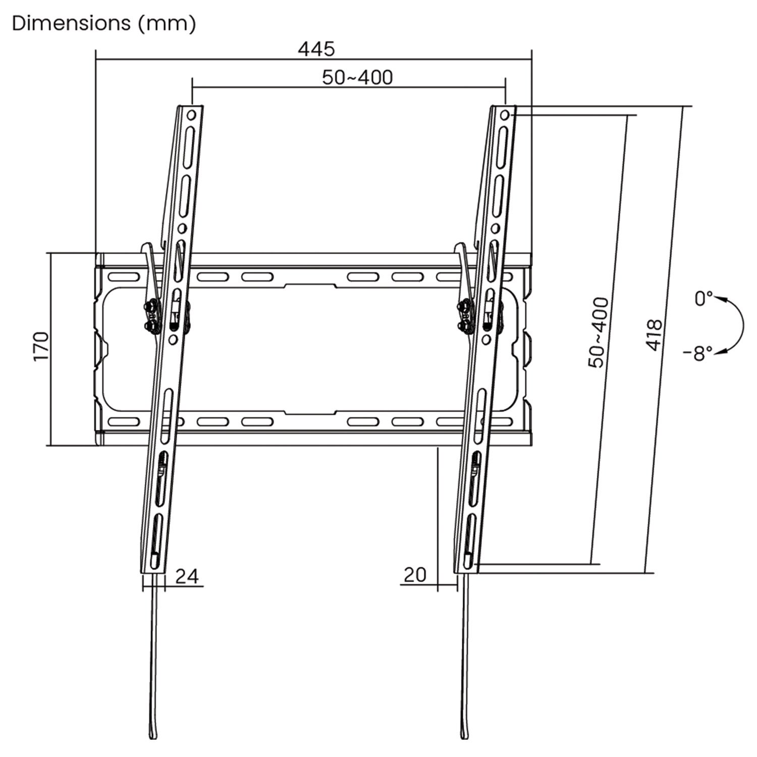 Расстояние от стены - 20 мм, благодаря чему кронштейн не заметен на стене. Это позволяет ему прекрасно вписываться в любой интерьер и экономит пространство.
