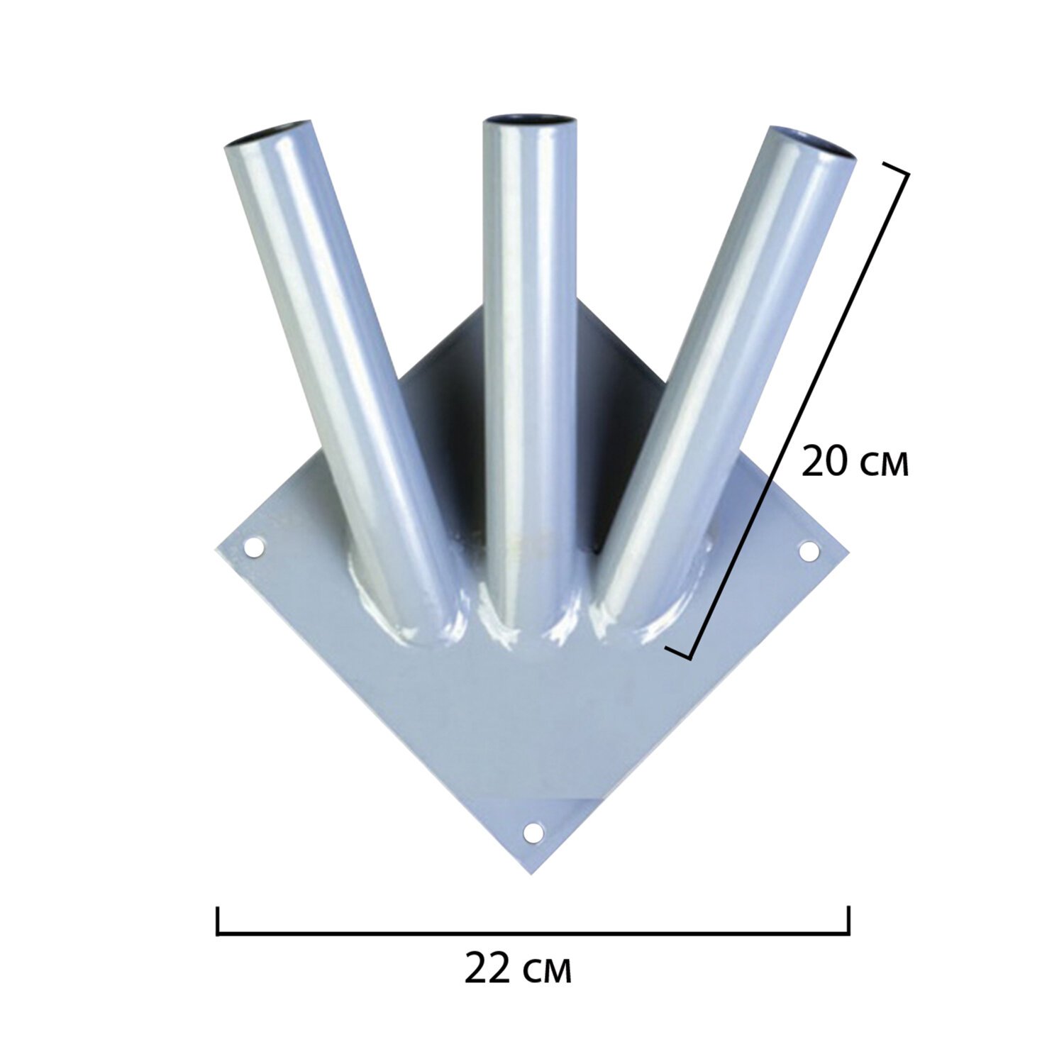 Кронштейн под флаги на три древка, квадратное основание, три точки крепления, металл