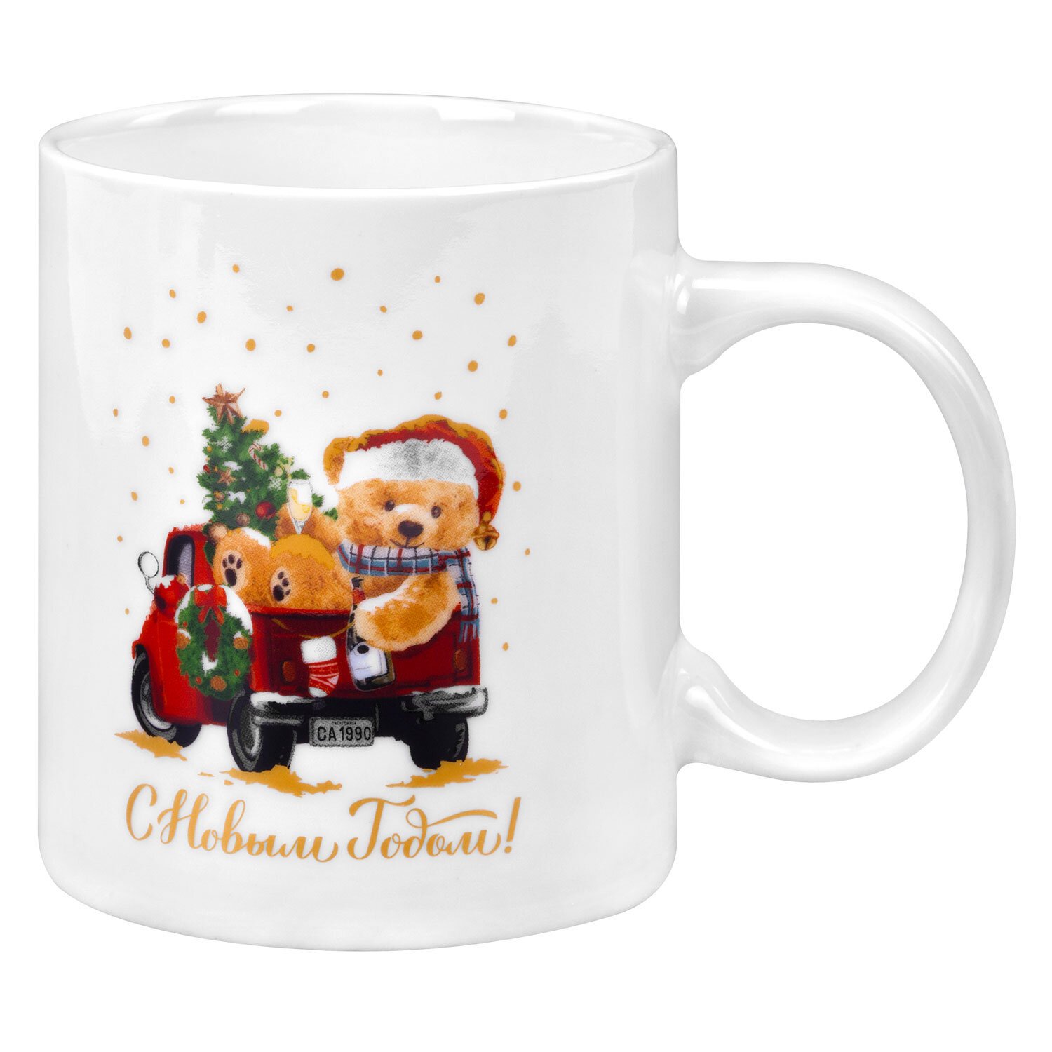 Кружка новогодняя 330 мл, "Мишка на машинке", 8х9,5см, каменная керамика, ЗОЛОТАЯ СКАЗКА, 592543