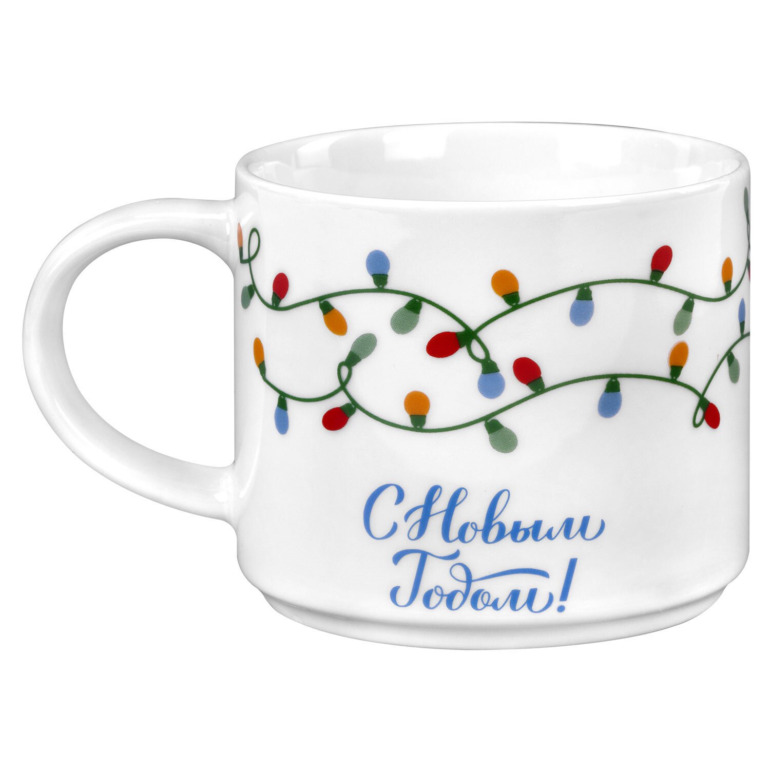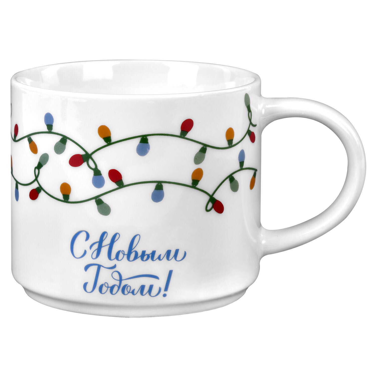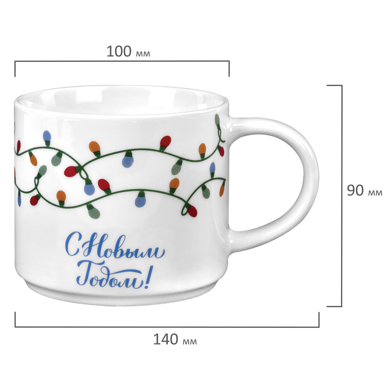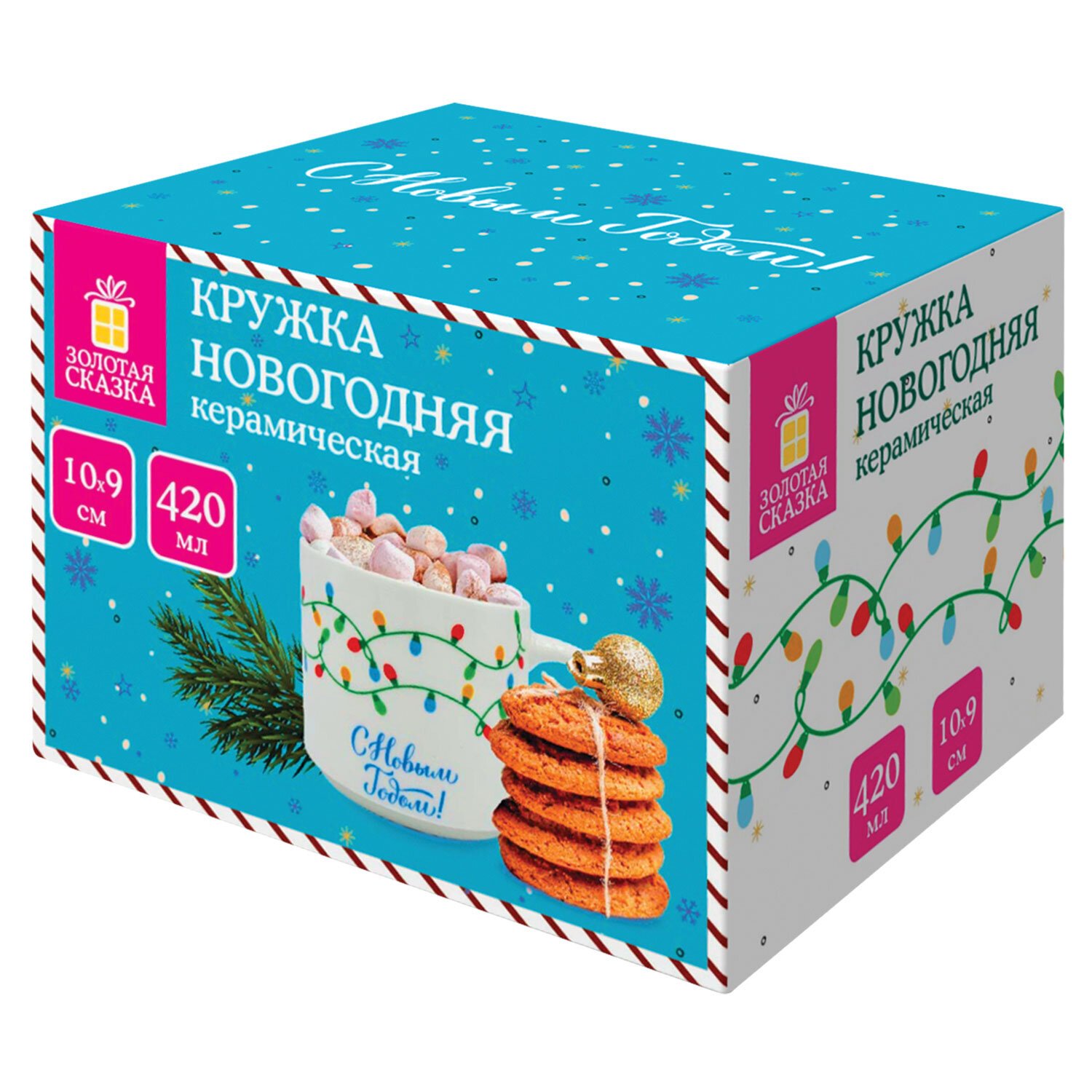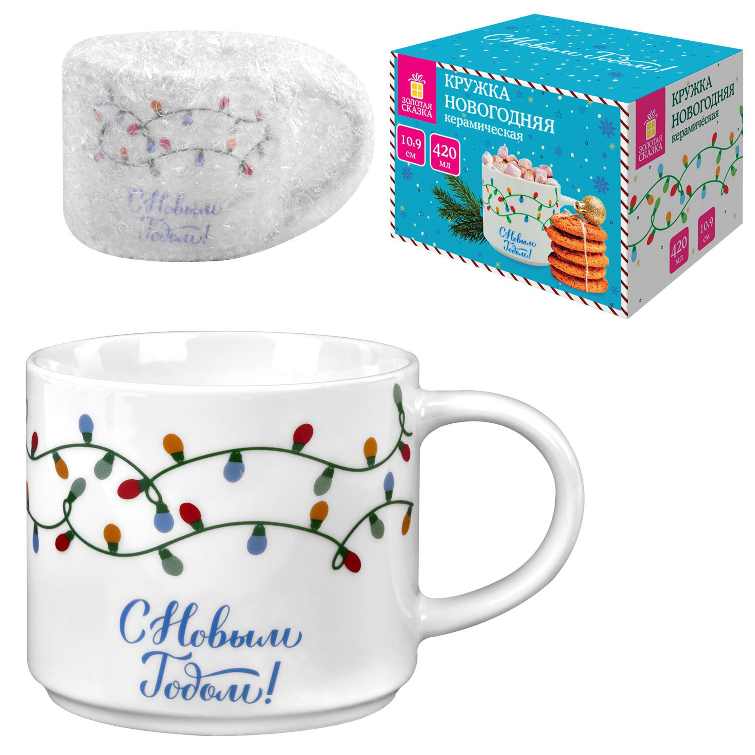 Кружка новогодняя 420 мл, "Гирлянда", 10х9см, каменная керамика, ЗОЛОТАЯ СКАЗКА, 592546