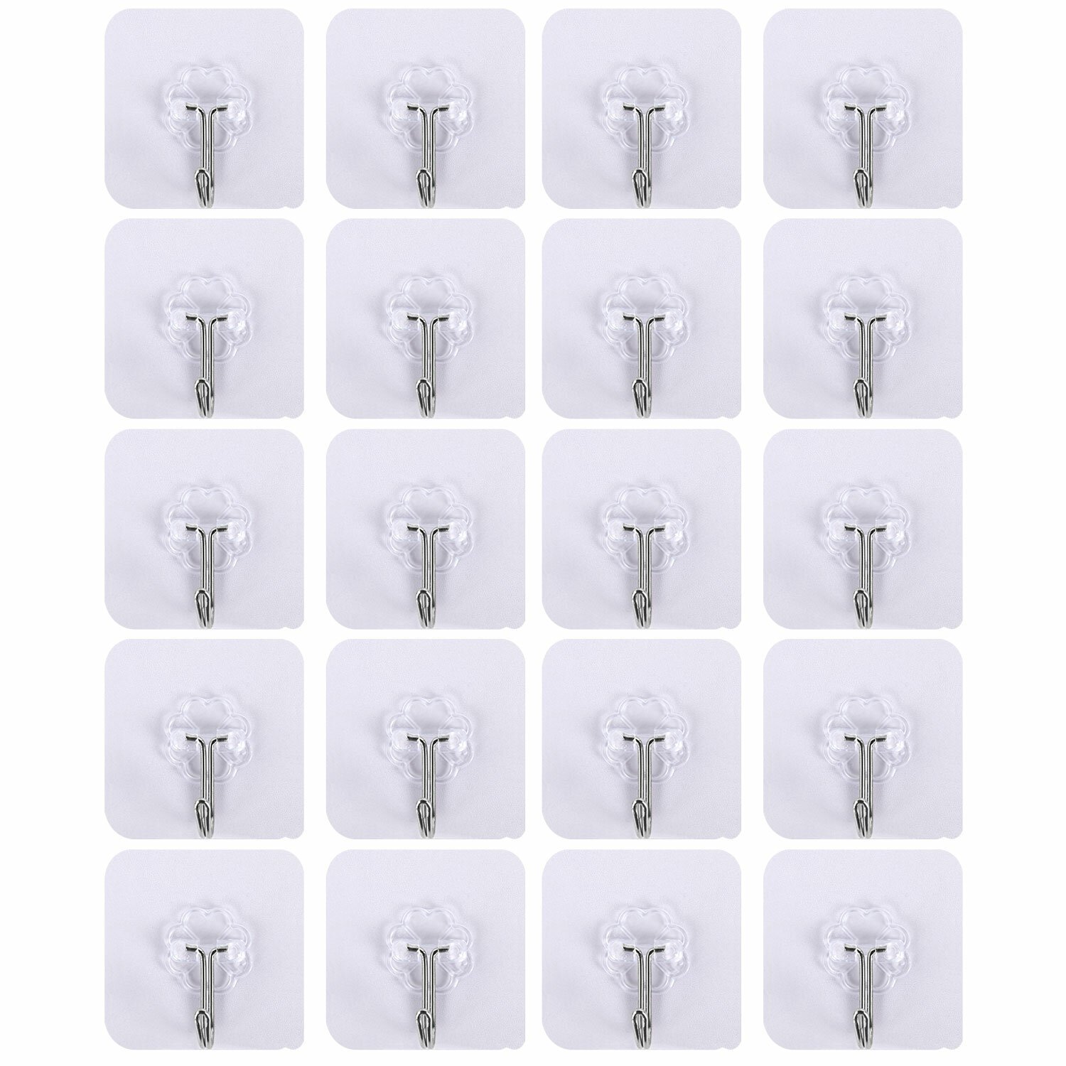 Крючки самоклеящиеся универсальные 6х6 см, КОМПЛЕКТ 20 шт., сталь + ПВХ, LAIMA Home, 608792