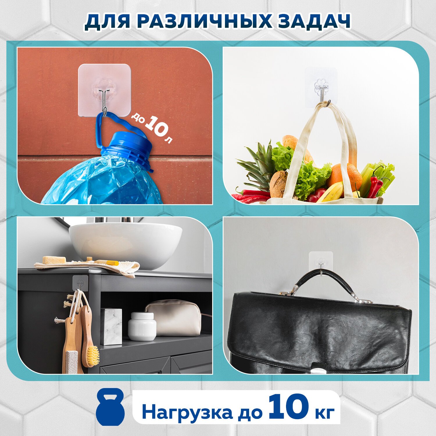 Крючки самоклеящиеся на липкой прозрачной основе уберегут ваши стены от сверления. Подойдут для крепления на гладких, непористых поверхностях. Благодаря стильному современному дизайну впишутся в любой интерьер, помогут организовать удобное хранение вещей.