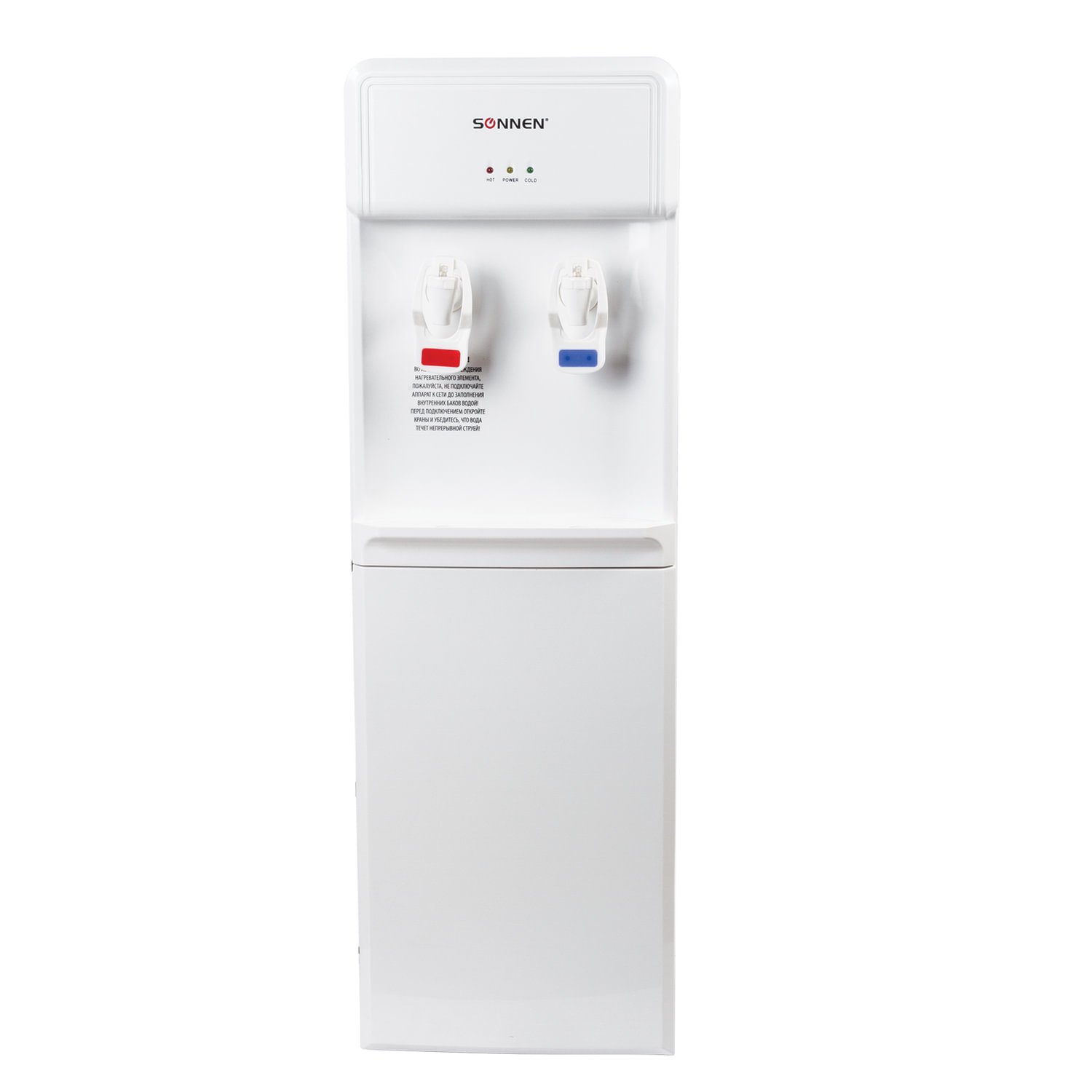 Кулер для воды SONNEN FSE-02Wc, напольный, НАГРЕВ/ОХЛАЖДЕНИЕ ЭЛЕКТРОННОЕ, шкаф, 2 крана, белый, 456167