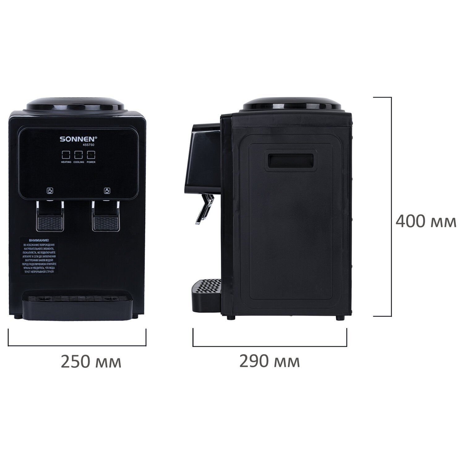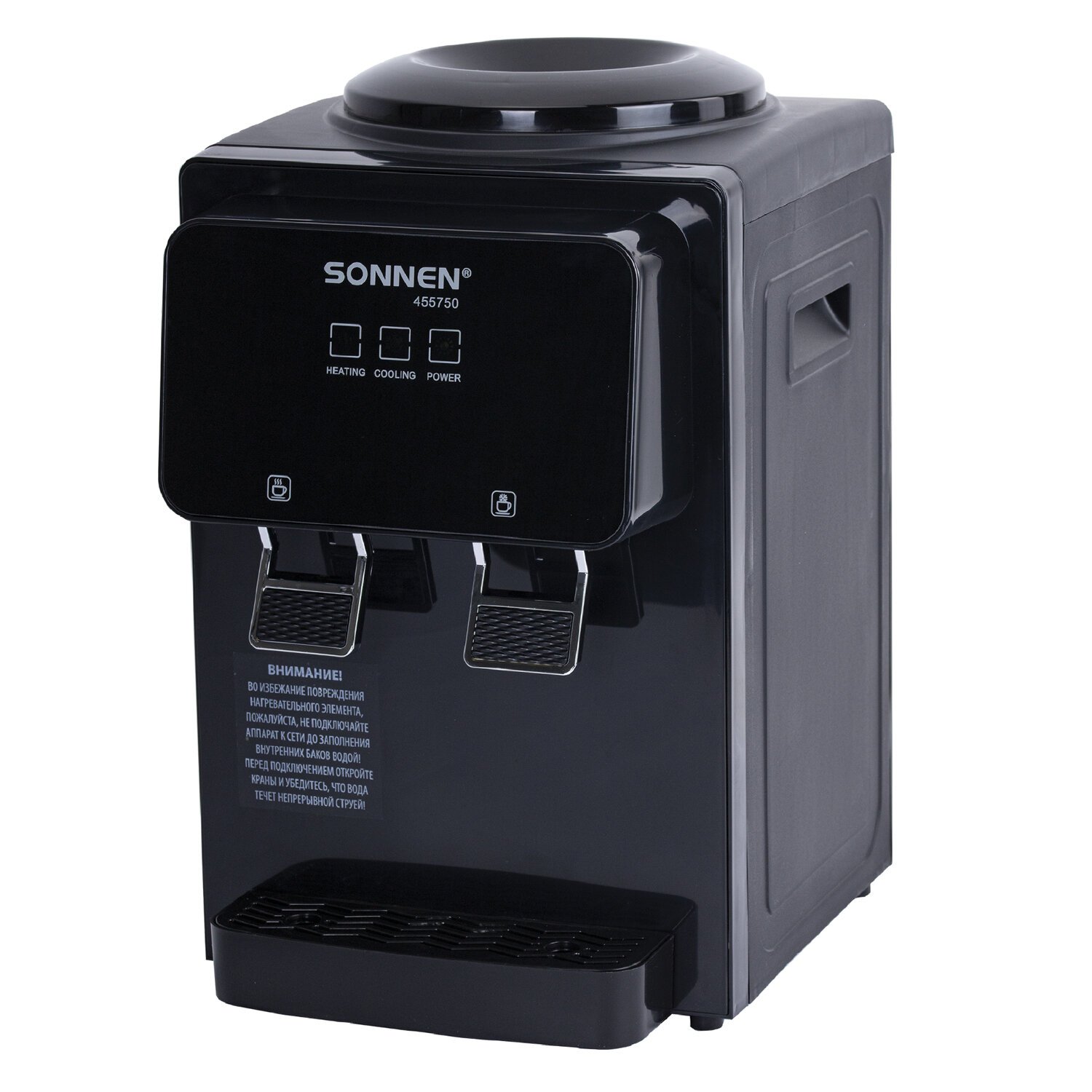 Кулер для воды SONNEN TSE-02WB, настольный, НАГРЕВ/ОХЛАЖДЕНИЕ ЭЛЕКТРОННОЕ, 2 крана, черный, 456174