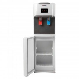 Кулер для воды LD-AEL-28c, напольный, НАГРЕВ/ОХЛАЖДЕНИЕ ЭЛЕКТРОННОЕ, шкафчик 10 л, 2 крана, белый/серебристый, 00257