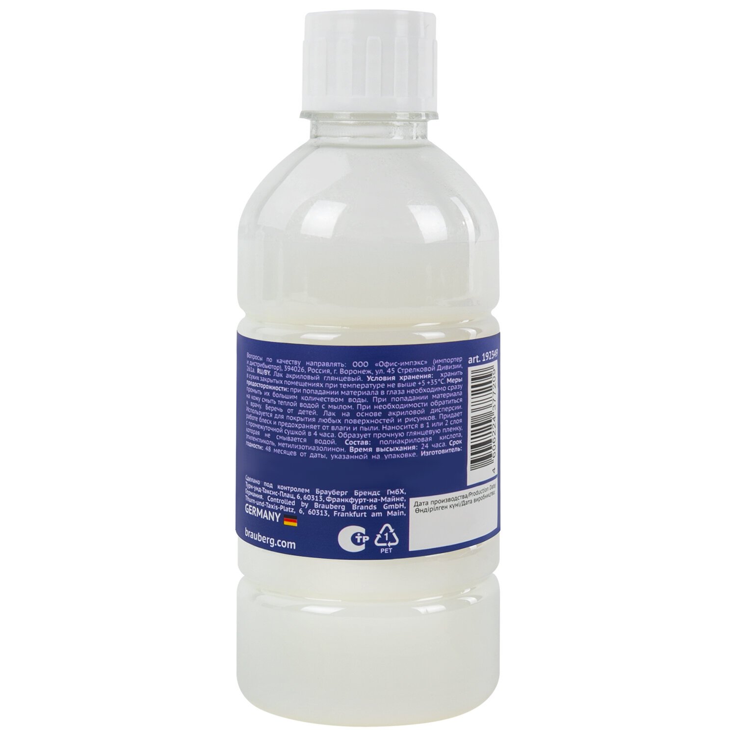Лак акриловый художественный универсальный, в бутылке, 250 мл, BRAUBERG ART CLASSIC, 192351