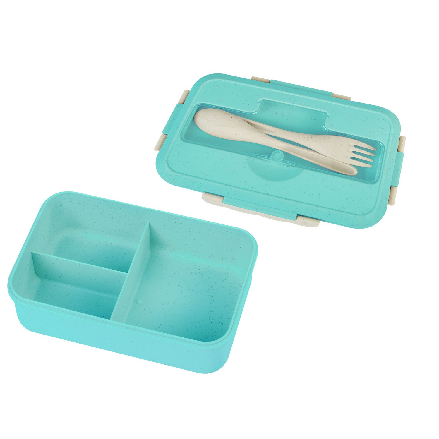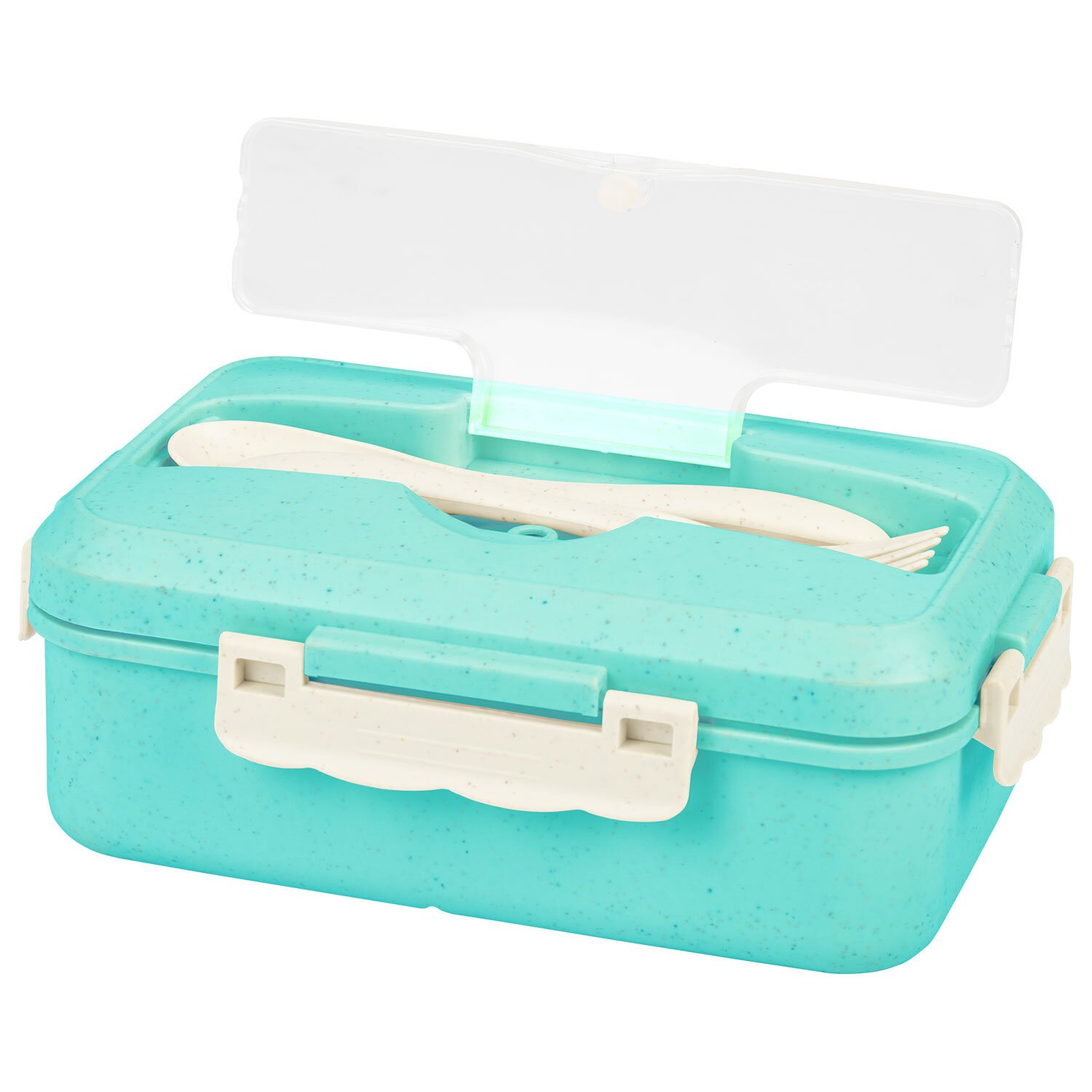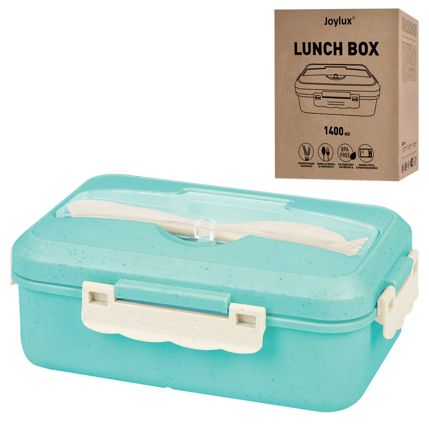 Ланч-бокс контейнер 3 отделения 1,4л ложка, вилка, 8х21х14см, мятный, JOYLUX ECO, 609344