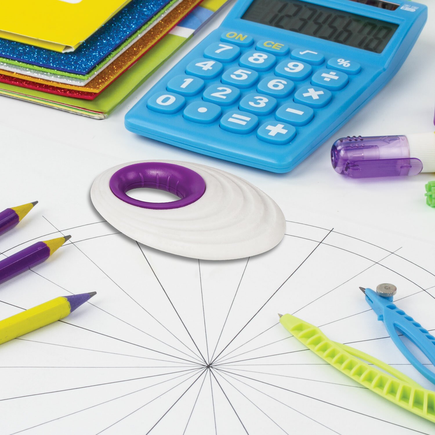 Имеет оригинальную форму - овальную с полой пластиковой сердцевиной трех ярких неоновых цветов ассорти. Ластик белого цвета. Размер - 65х40х13 мм. Поставляется в картонном дисплее.