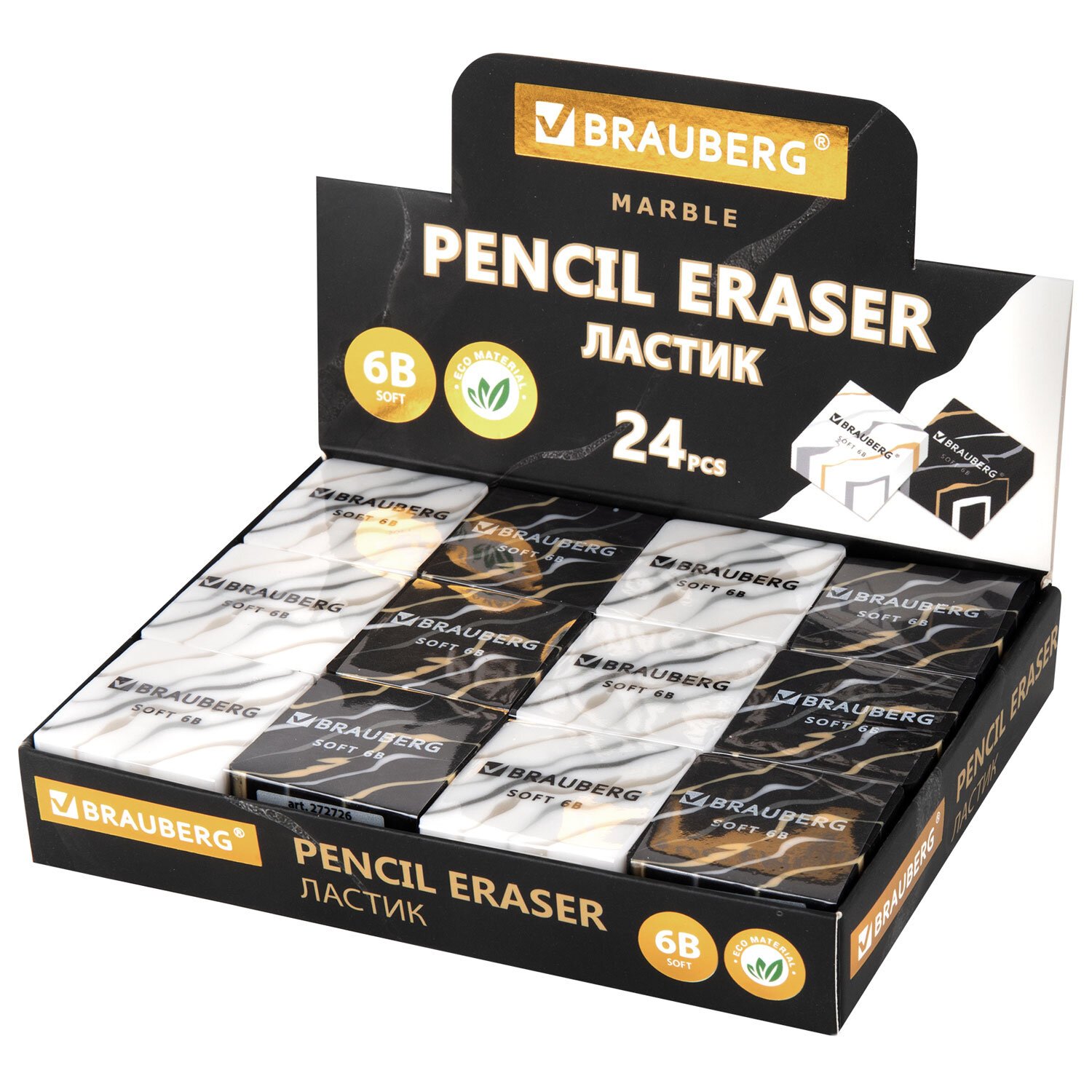 Ластик BRAUBERG "MARBLE" предназначен для удаления надписей, сделанных чернографитным карандашом.