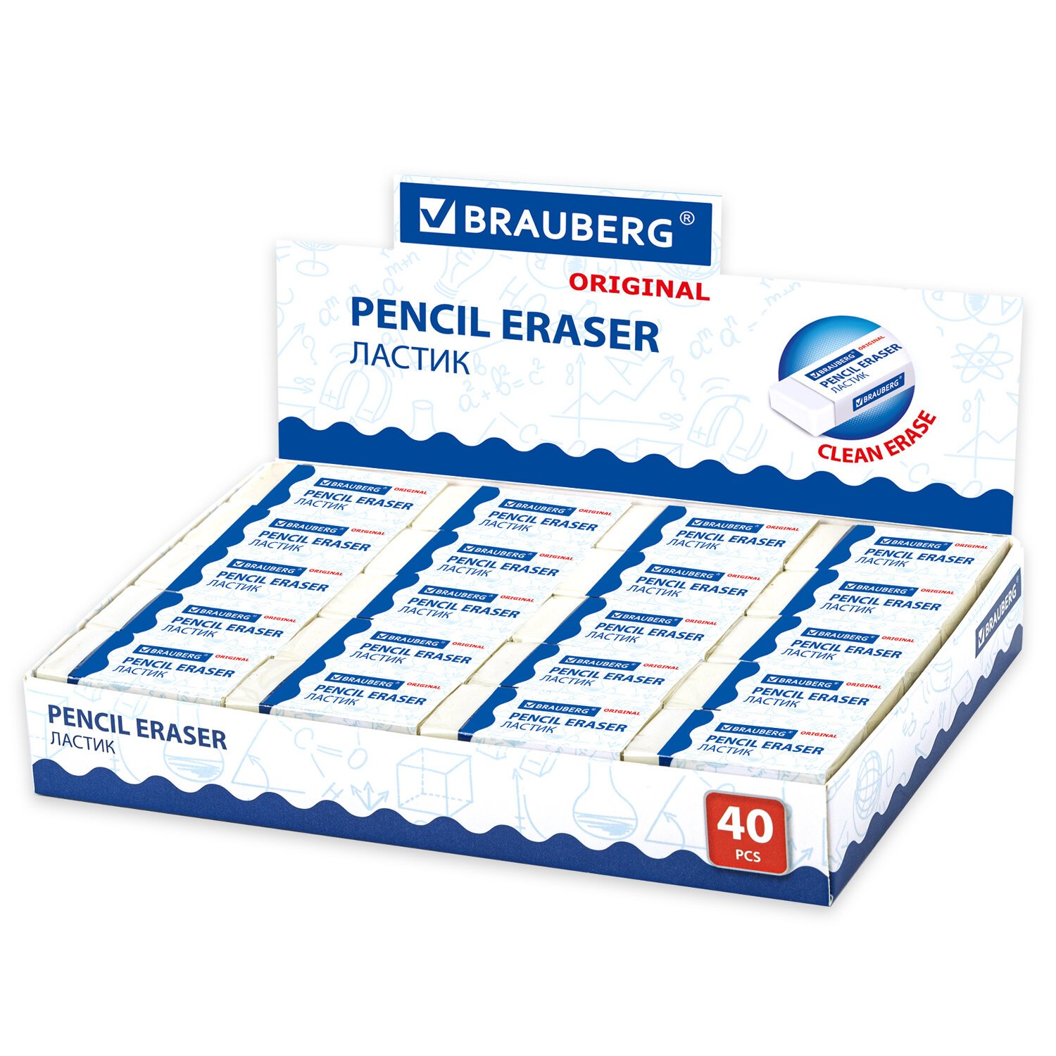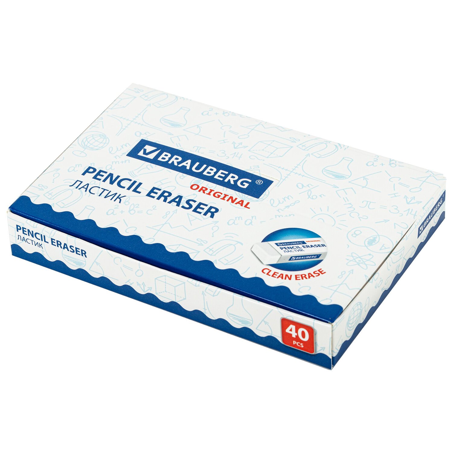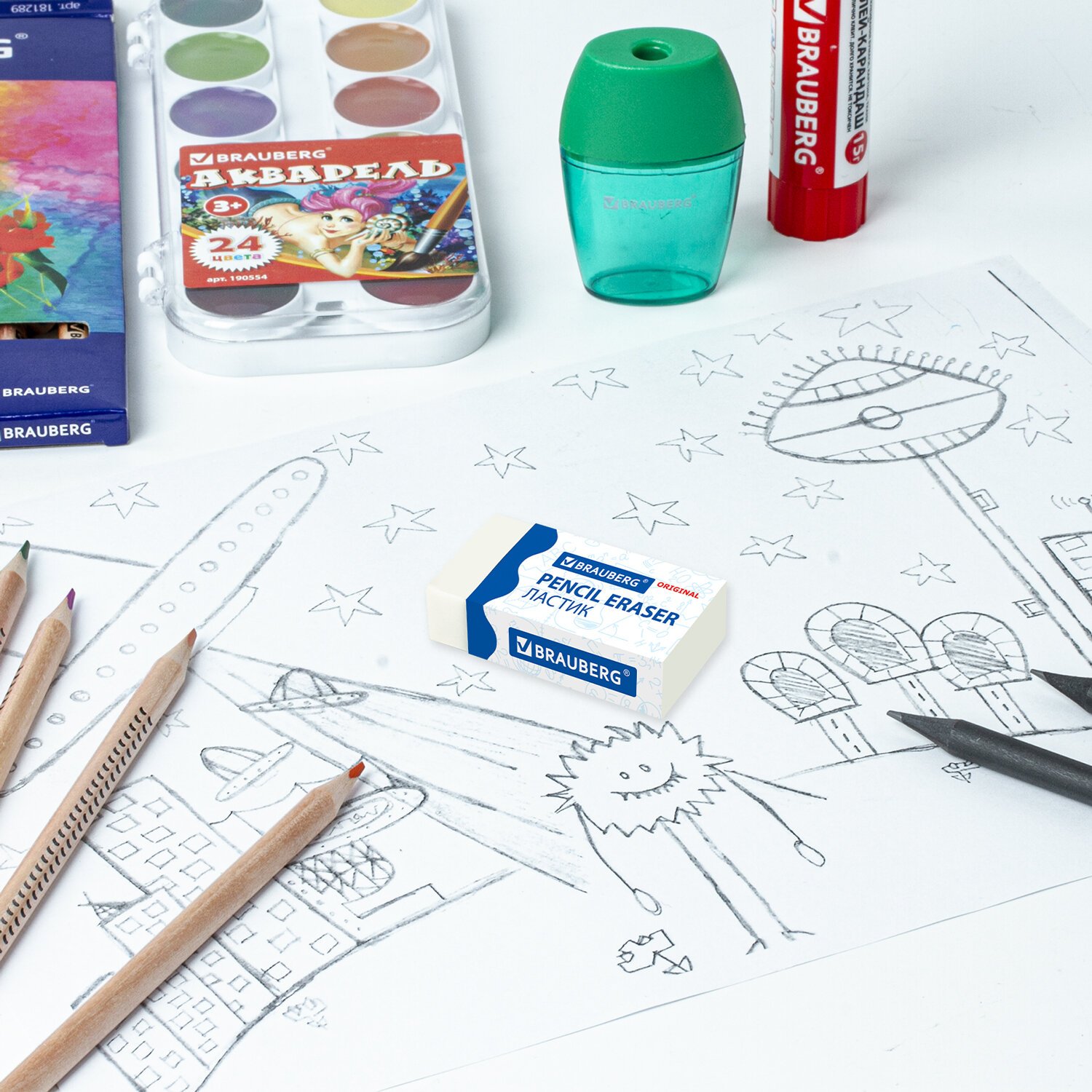 Ластик BRAUBERG "Original" обеспечивает лёгкое и чистое стирание без повреждения поверхности бумаги.