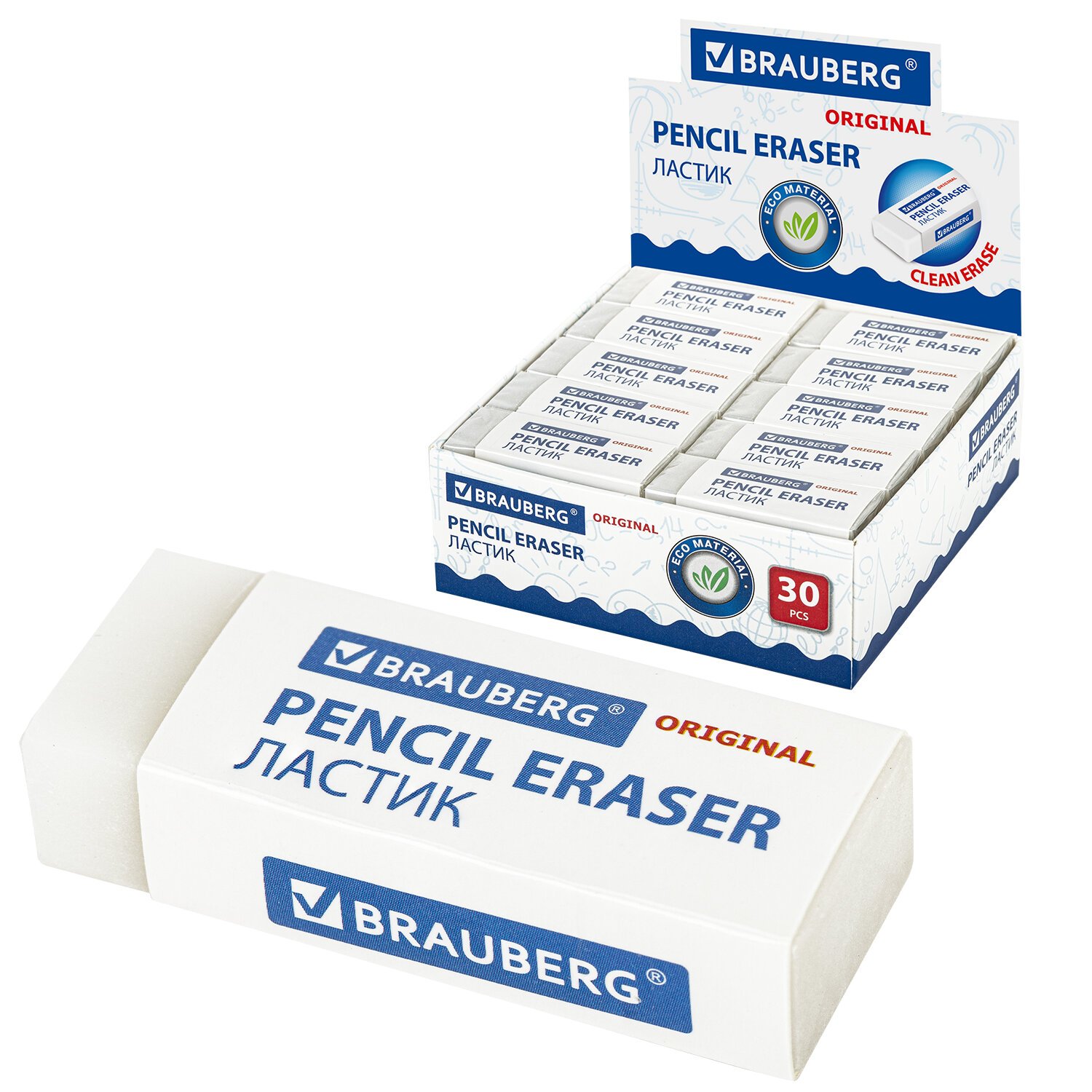 Ластик BRAUBERG предназначен для удаления надписей, сделанных чернографитным карандашом.