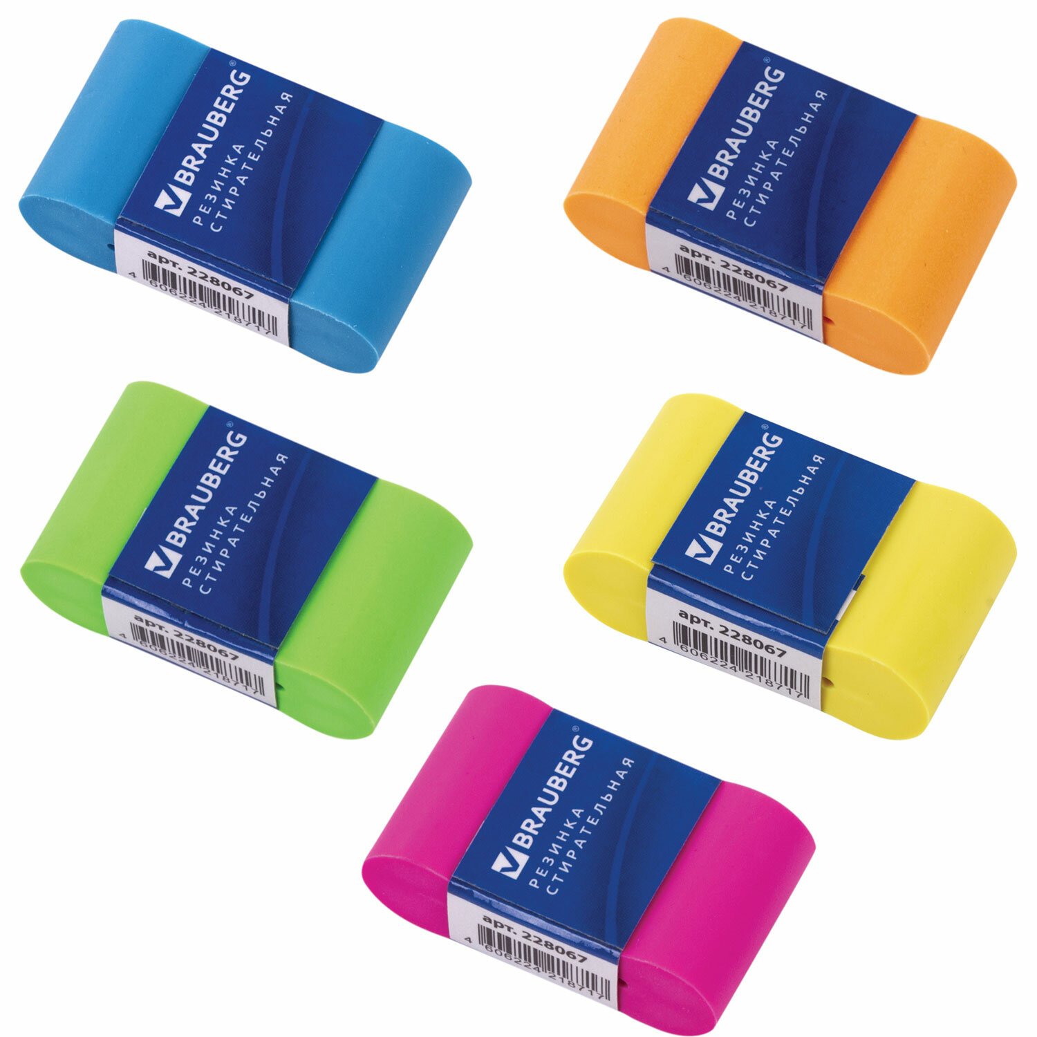 Ластик большой BRAUBERG "Fresh Zone", 60х18х12 мм, цвет ассорти, прямоугольный, скошенный, 228717