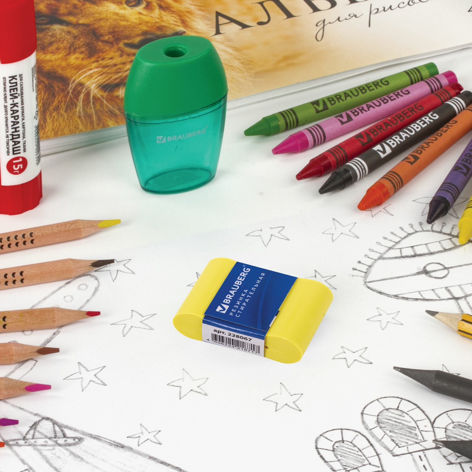 Ластик BRAUBERG "Rainbow" обеспечивает лёгкое и чистое стирание без повреждения поверхности бумаги.