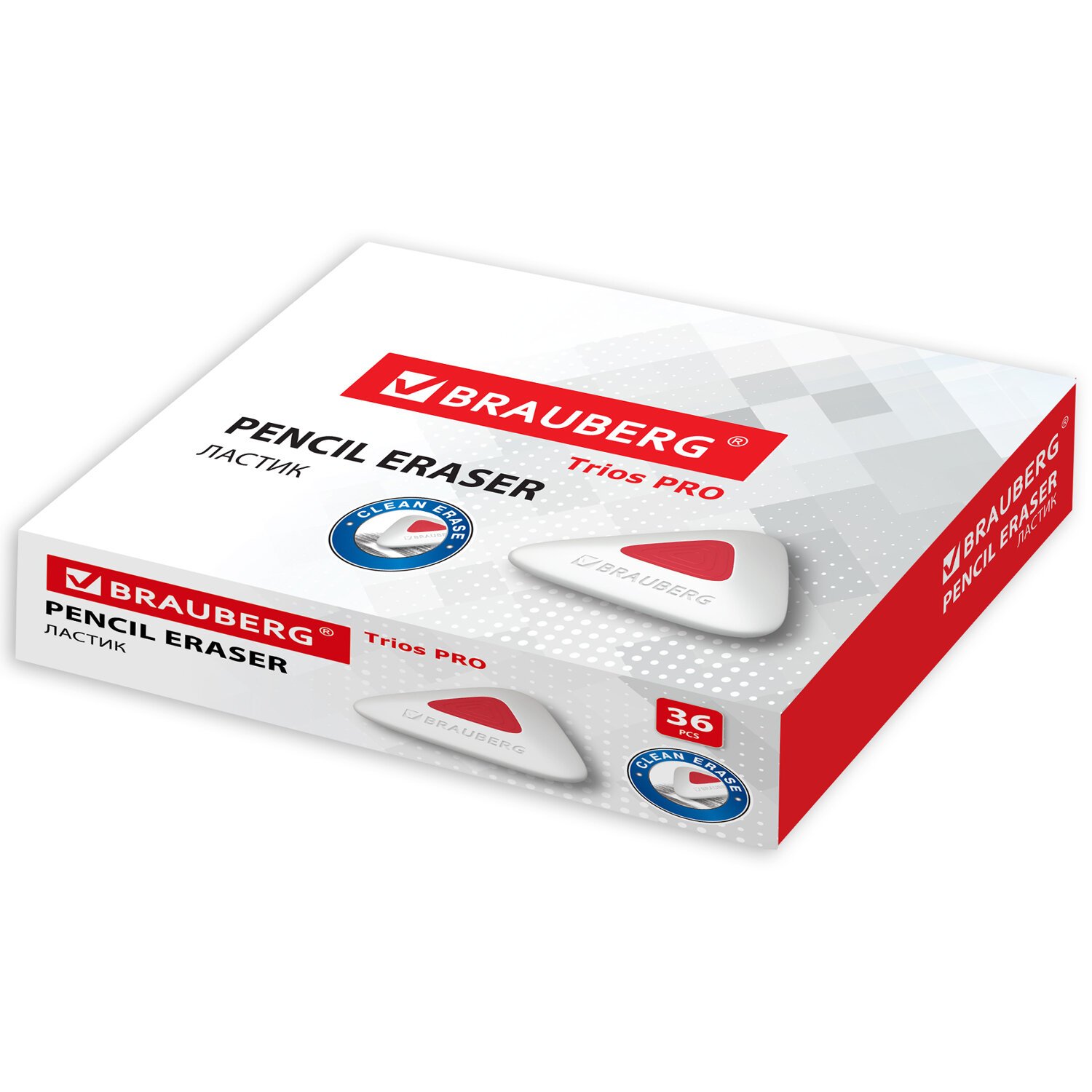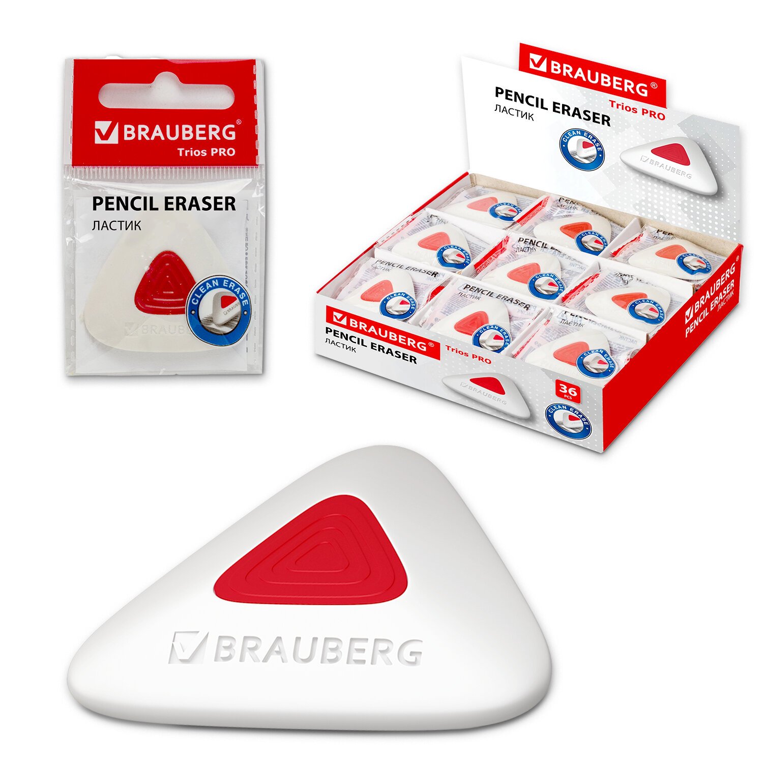 Ластик BRAUBERG "Trios PRO" предназначен для удаления надписей, сделанных чернографитным карандашом.