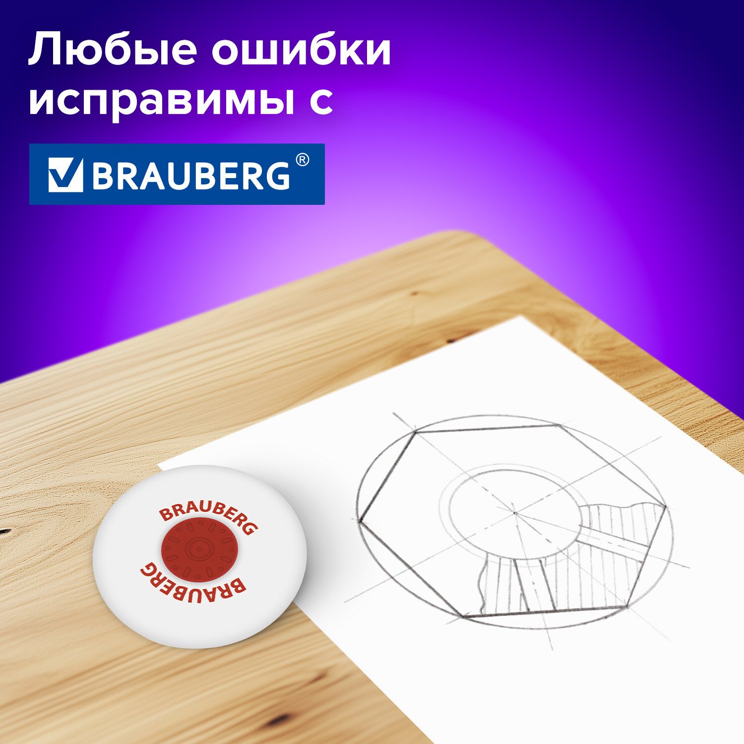 Ластик BRAUBERG "Universal" предназначен для удаления надписей, сделанных чернографитными карандашами.