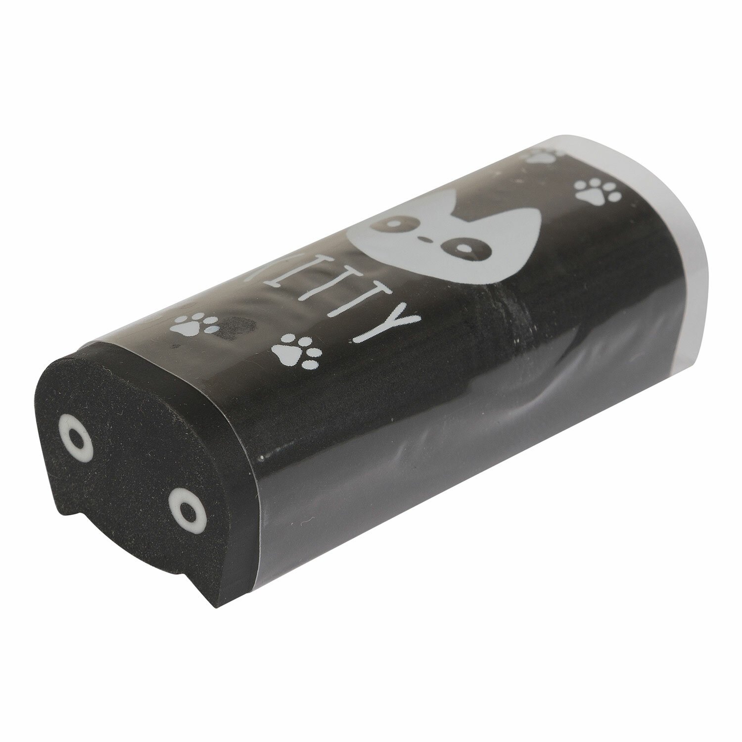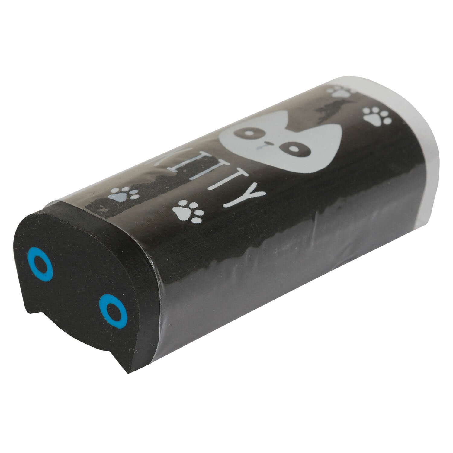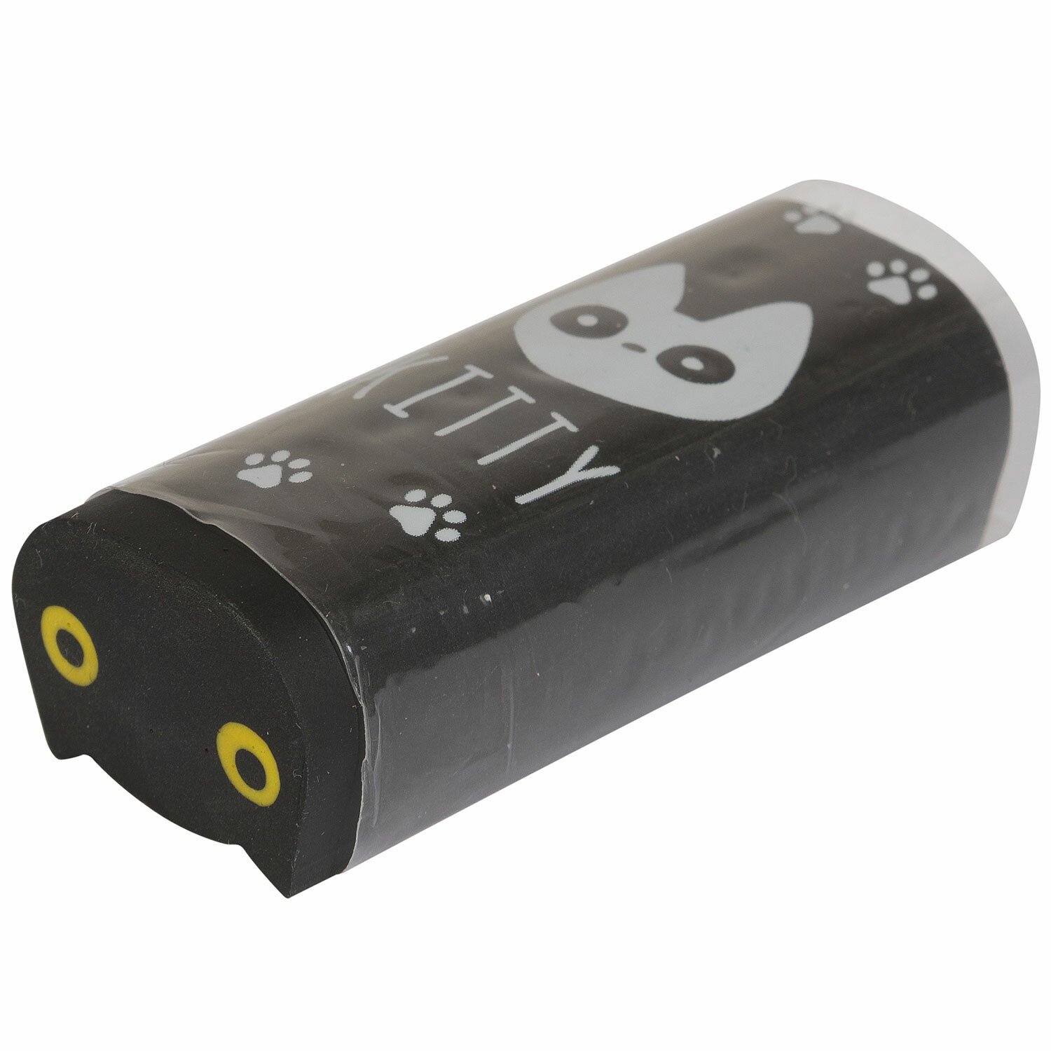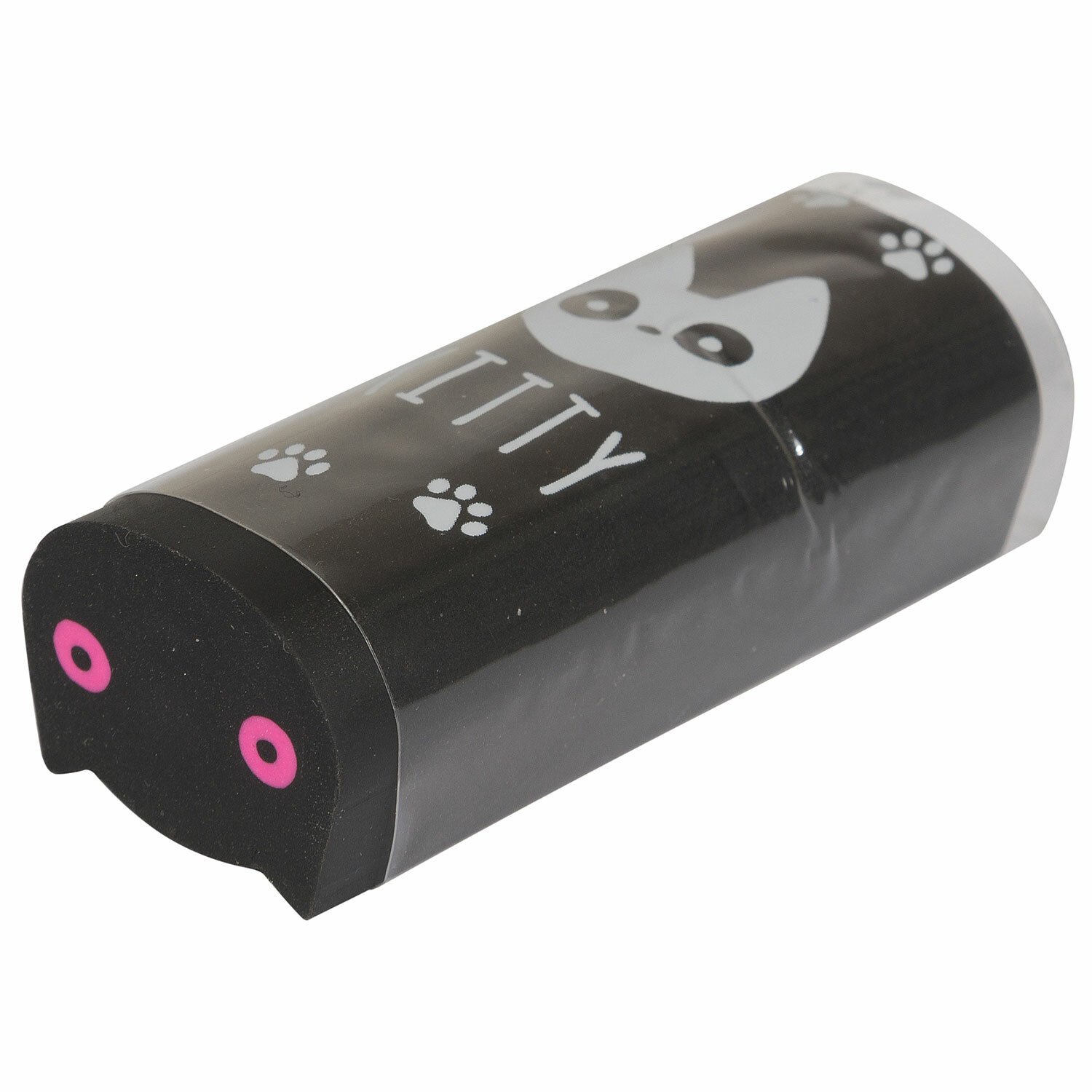 Сделан из термопластичной резины черного цвета. Мягкий, не пачкает бумагу, точно и чисто стирает лишние линии. Есть четыре вида дизайна: кошка с розовыми, белыми, синими и черными глазами.
