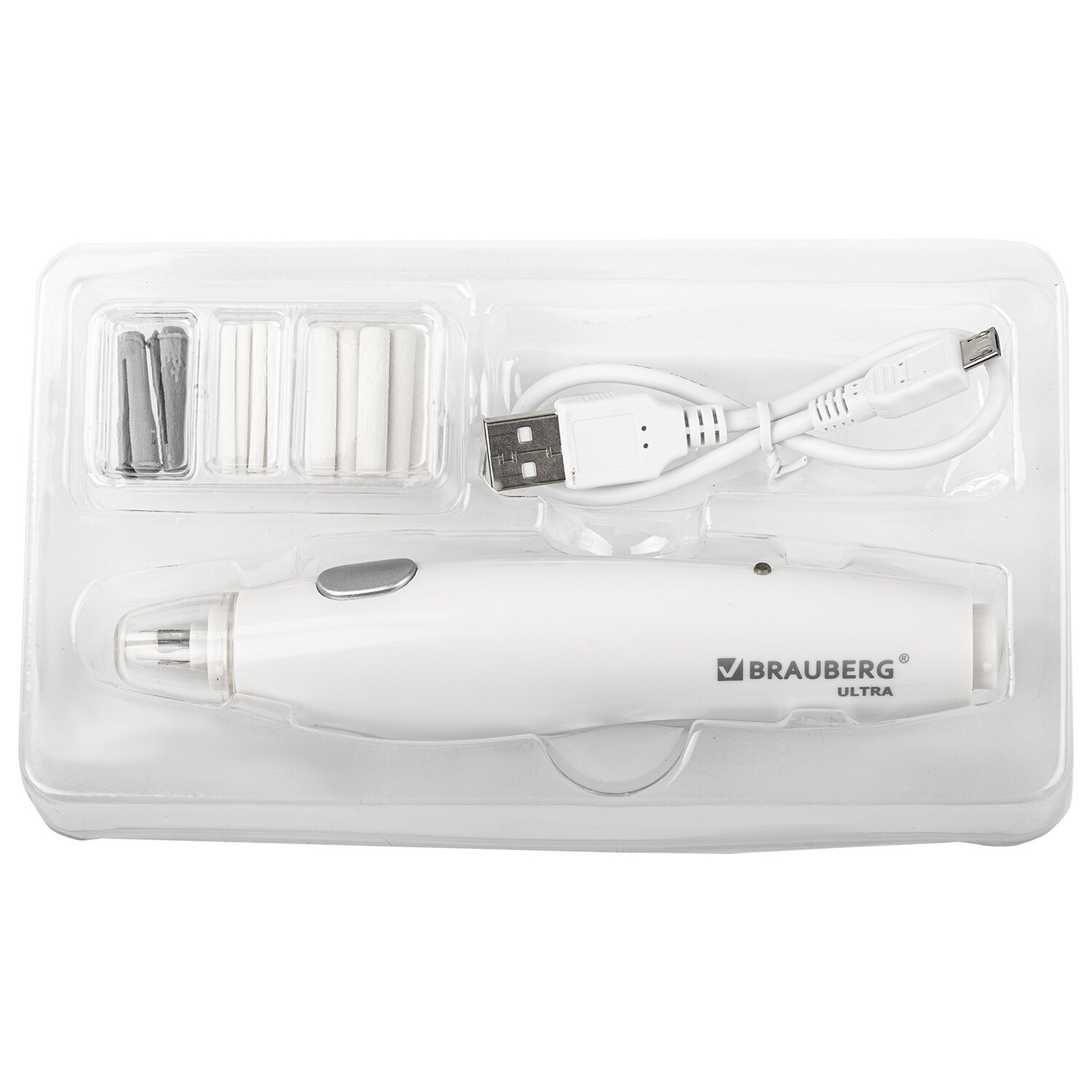 Ластик электрический BRAUBERG "ULTRA", АККУМУЛЯТОР, зарядка USB, + 16 сменных ластиков, 229609