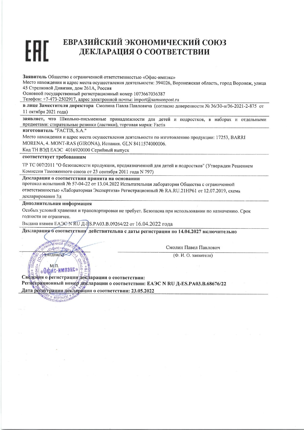 Ластик бренда FACTIS, произведенный в Испании, отлично подходит для удаления надписей, сделанных чернографитным карандашом.