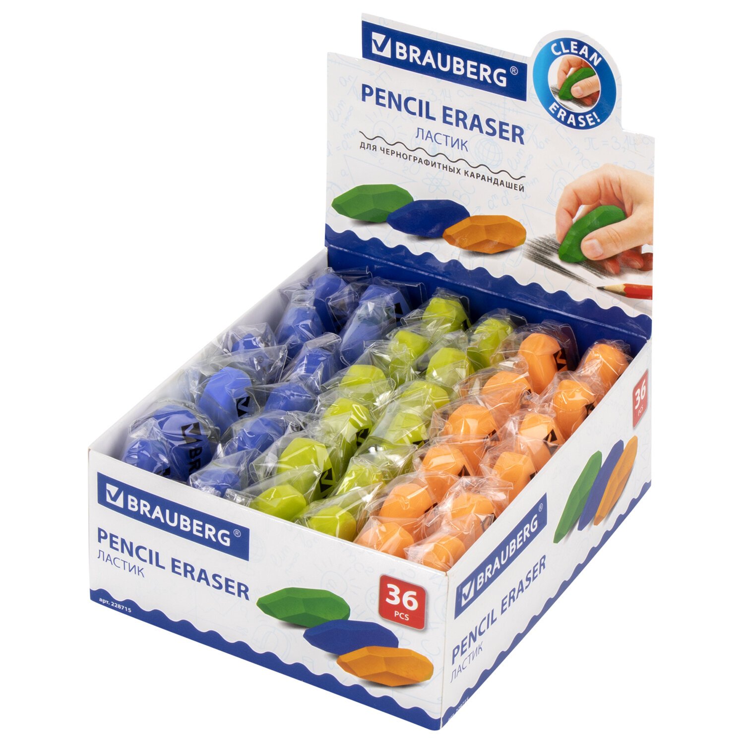 Ластик BRAUBERG "Stone" обеспечивает лёгкое и чистое стирание без повреждения поверхности бумаги. Предназначен для удаления надписей и рисунков, сделанных чернографитными карандашами.
