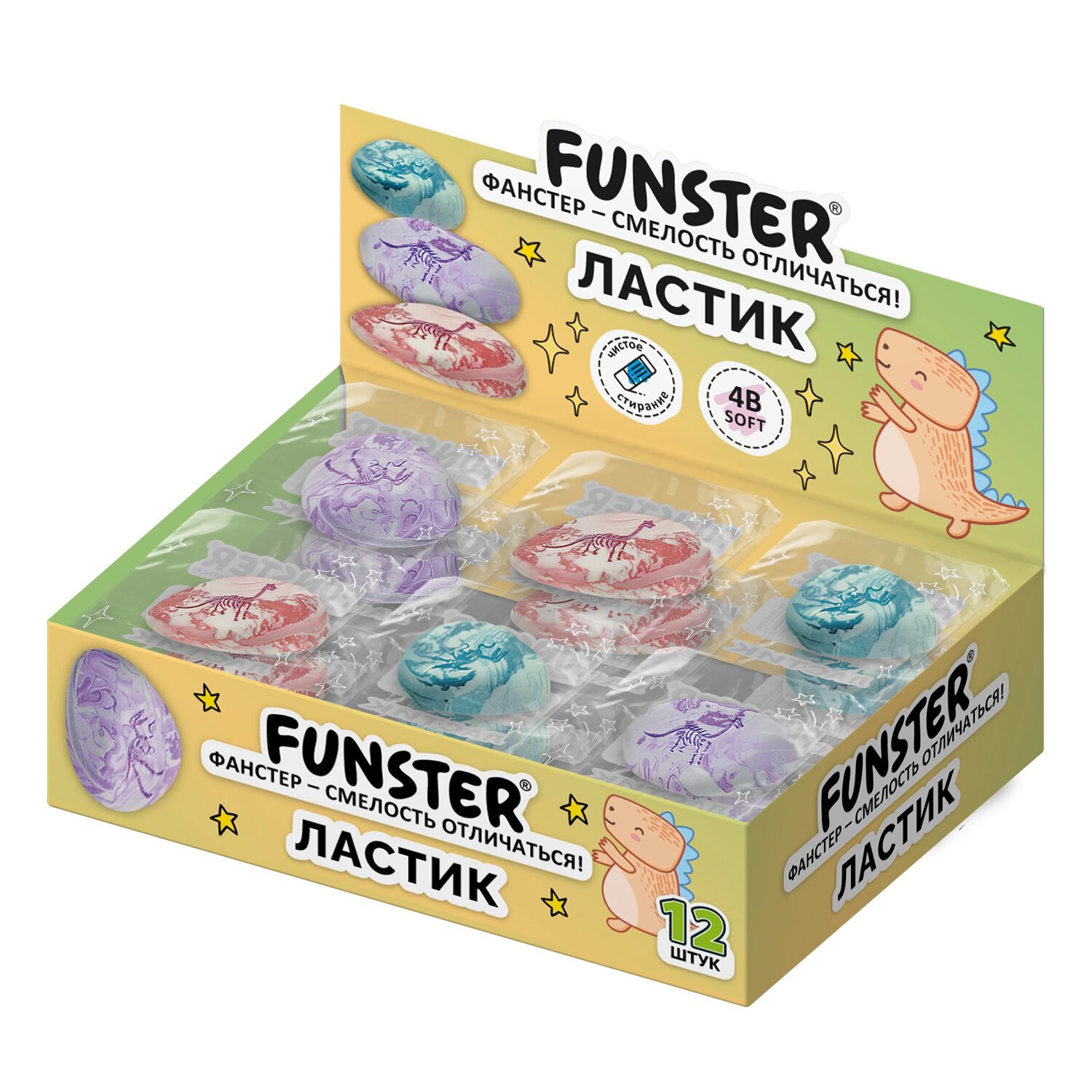 Ластик фигурный FUNSTER (ФАНСТЕР) "ПАЛЕОНТОЛОГ" предназначен для удаления надписей, сделанных чернографитным карандашом.