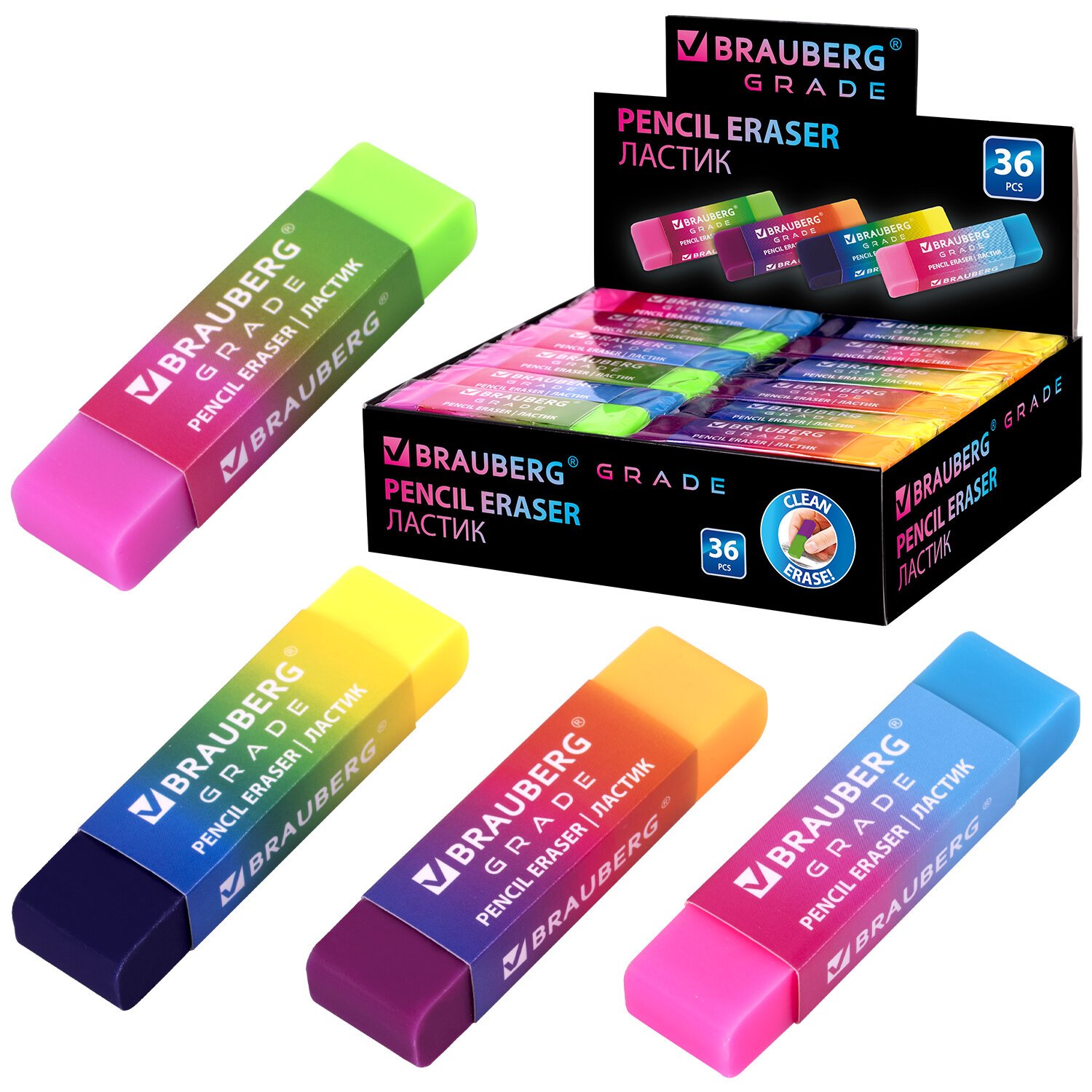 Ластик BRAUBERG "Grade" выполнен в градиентных цветах и предназначен для удаления надписей, сделанных чернографитным карандашом.