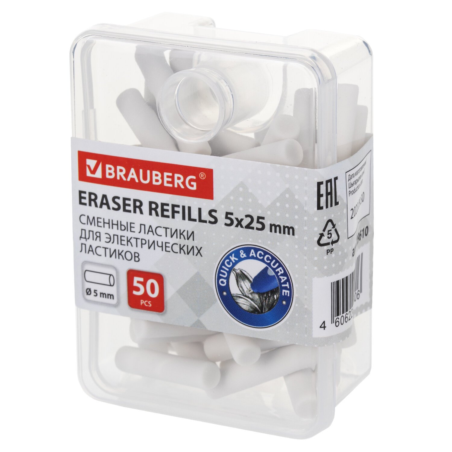 Ластик сменный для электрического ластика BRAUBERG, КОМПЛЕКТ 50 штук, размер 5х25 мм, 229610