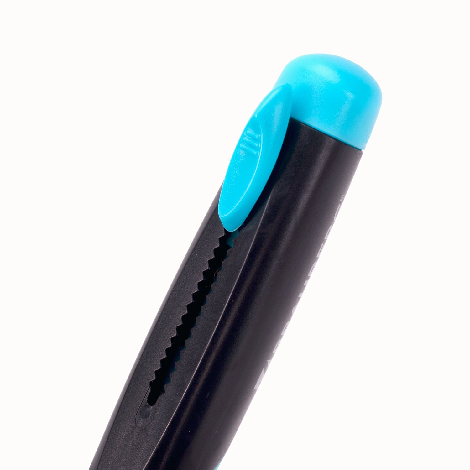 Оригинальный пластиковый корпус поставляется в нескольких цветах ассорти без возможности выбора. Зона захвата снабжена резиновым грипом с выемками для пальцев, обеспечивающим комфортное использование и препятствующим скольжению пальцев. Выдвижной механизм позволяет выдвигать и задвигать ластик и предотвращает его от загрязнения и высыхания. Длина самого ластика – 60 мм, длина вместе с корпусом – 112 мм.