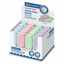 Ластик выдвижной BRAUBERG "Slider Mini", 68х22х13 мм, пастельные цвета ассорти, 271983