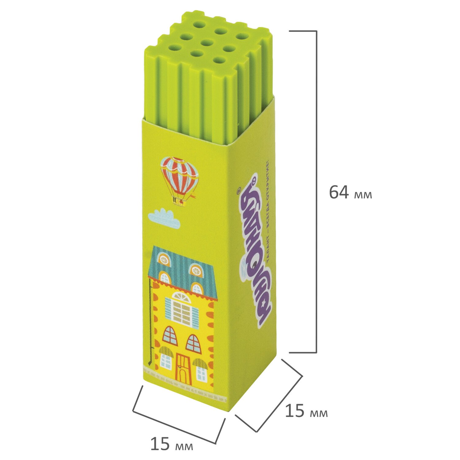Имеет прямоугольную форму, поставляется в четырех цветах ассорти. Ластик обеспечит лёгкое и чистое стирание без повреждения поверхности бумаги и без образования бумажной пыли. Размер - 64х15х15 мм. Поставляется в картонном дисплее. Единица товара имеет картонный держатель.