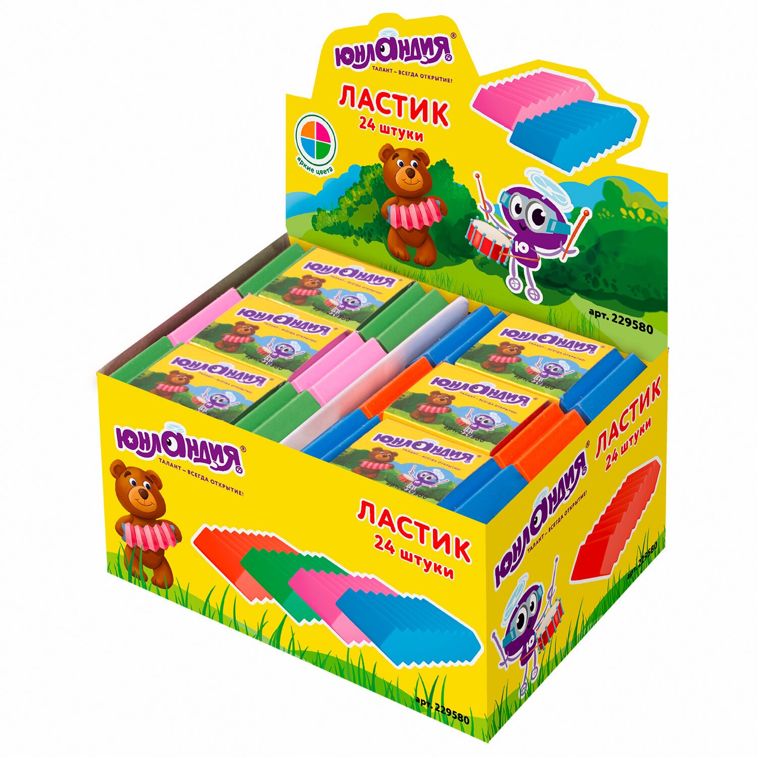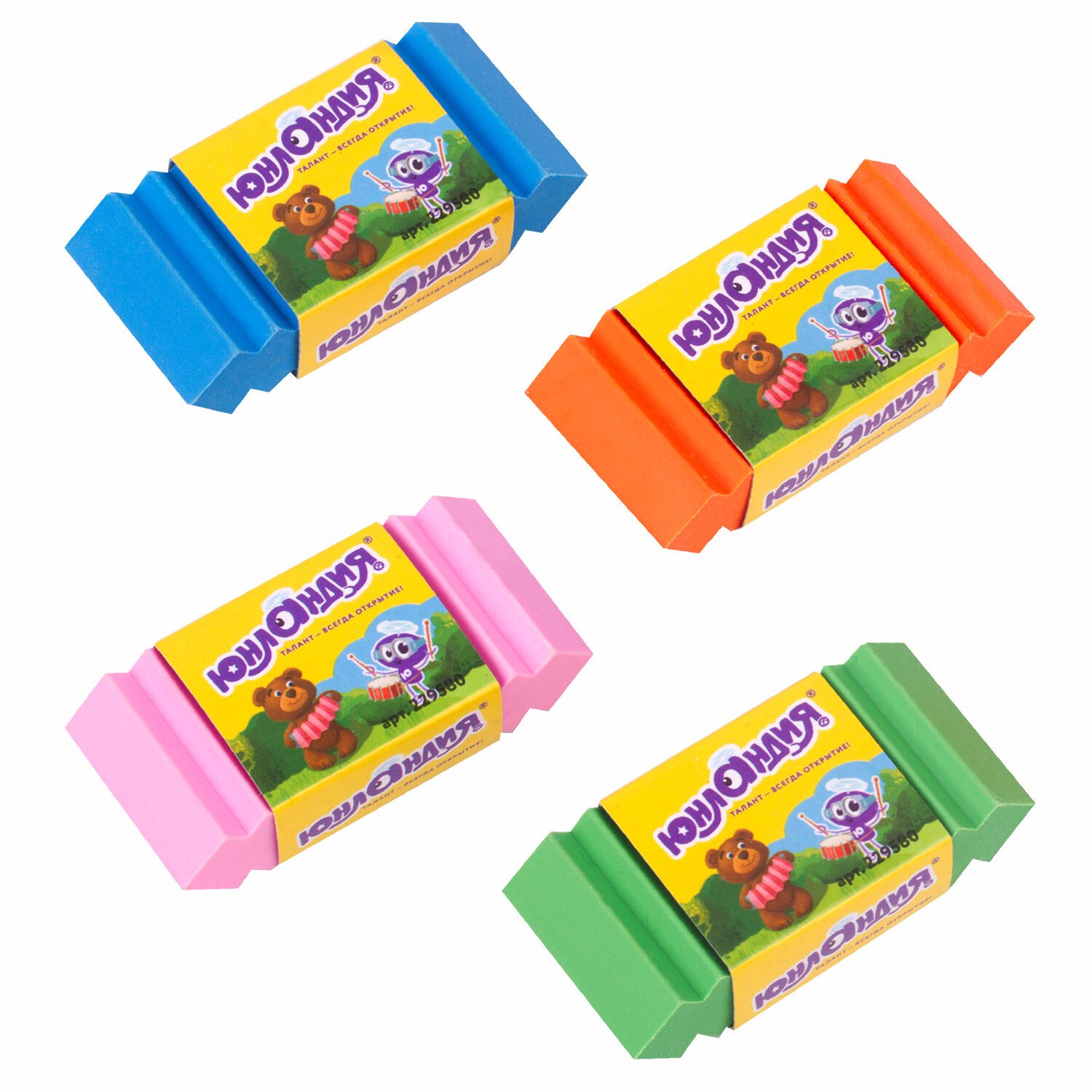 Ластик ЮНЛАНДИЯ "Юнландик-музыкант", 54х25х13 мм, ассорти, 229580