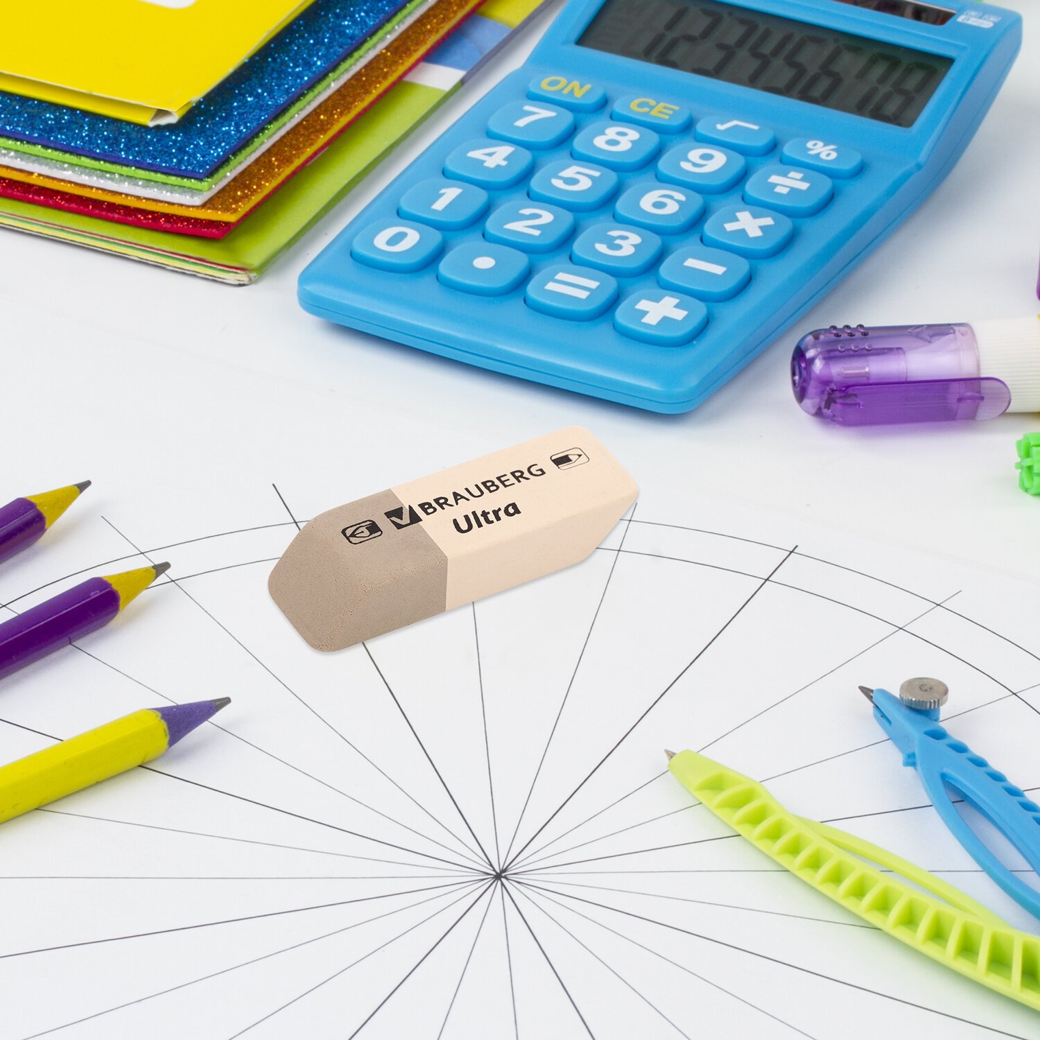 Ластики BRAUBERG "Ultra" предназначены для удаления надписей, сделанных чернографитным карандашом или чернилами.