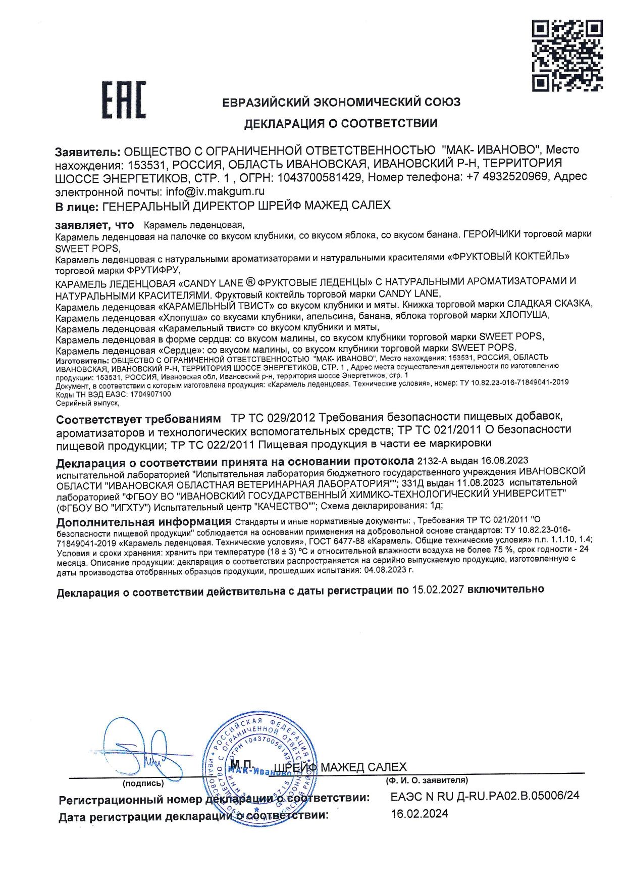 | Фирма-производитель | ГК "Сладкая Сказка" |